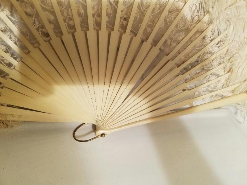 Amazingly rare French fan from a private estate of an Actor in Toulouse France.. Eggshell in coloration , bone colored stick and old french lace.. Drop dead gorgeous is this fan. from the 1890's.and in amazing antique condition.