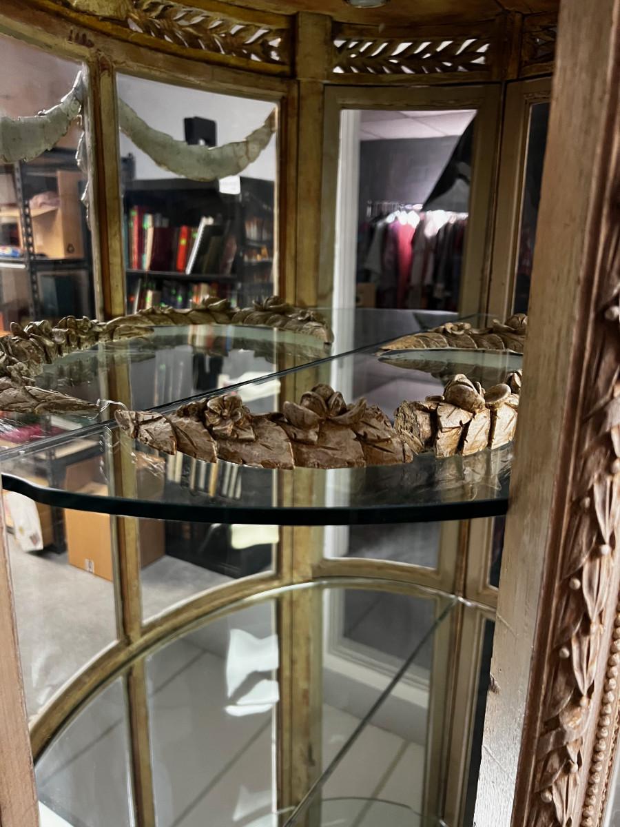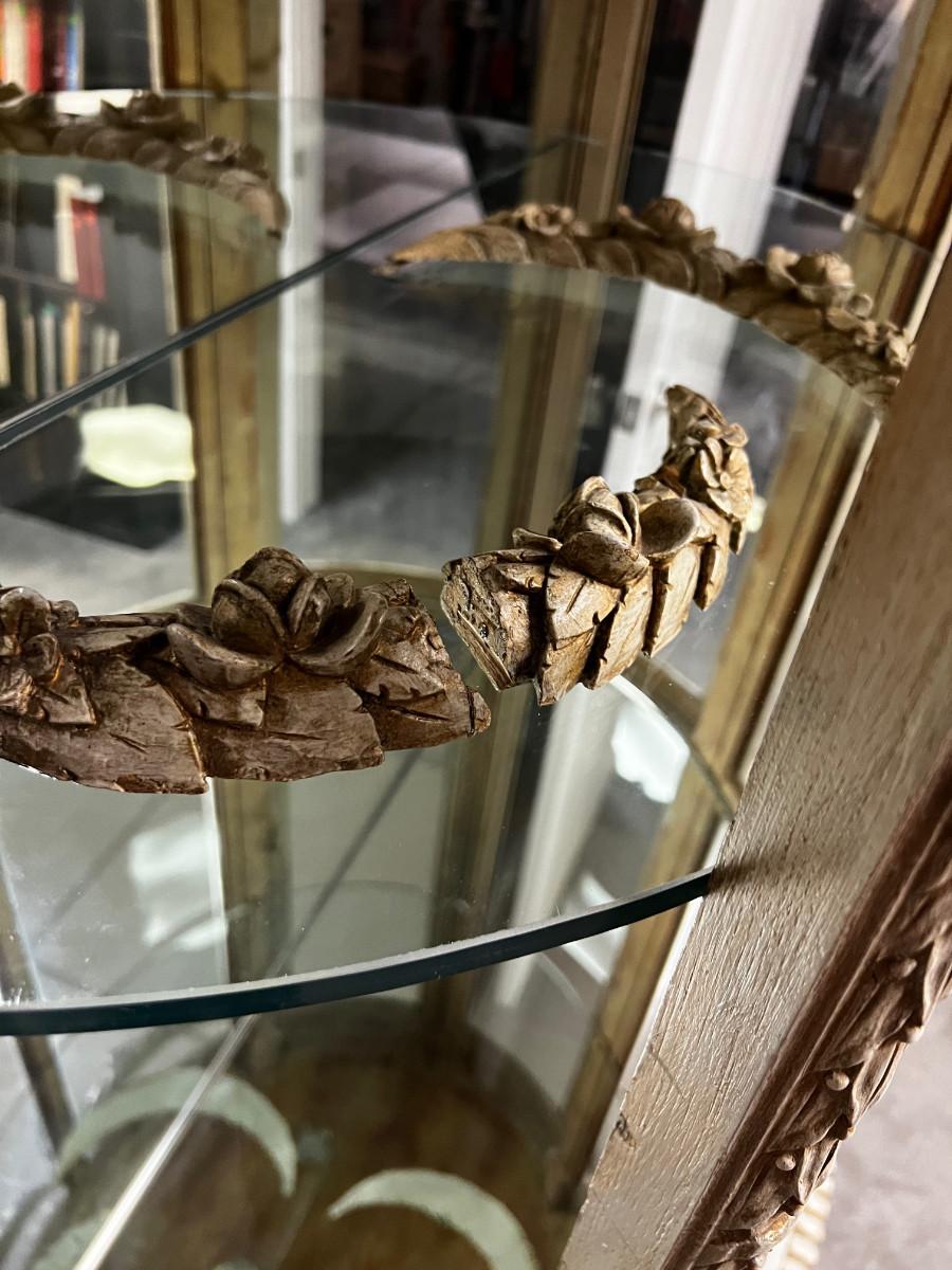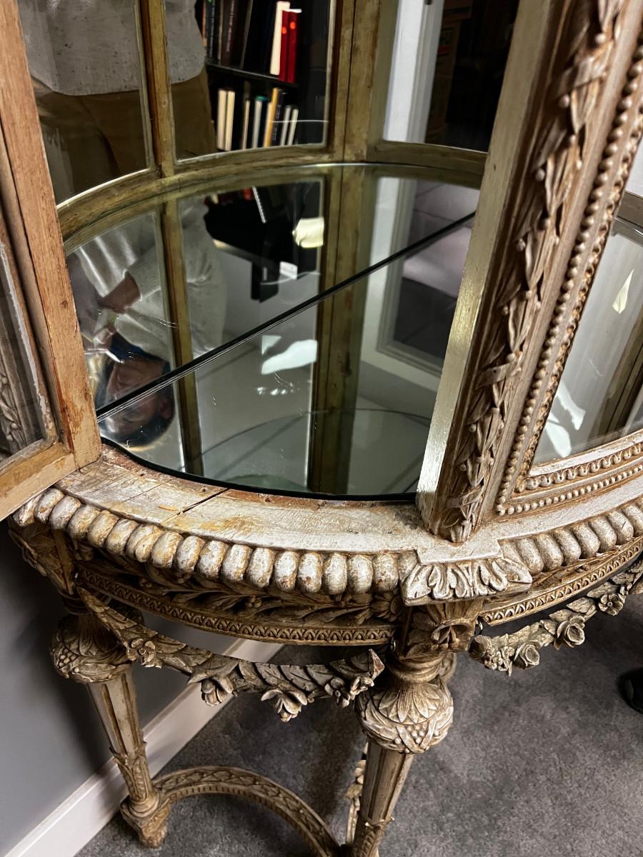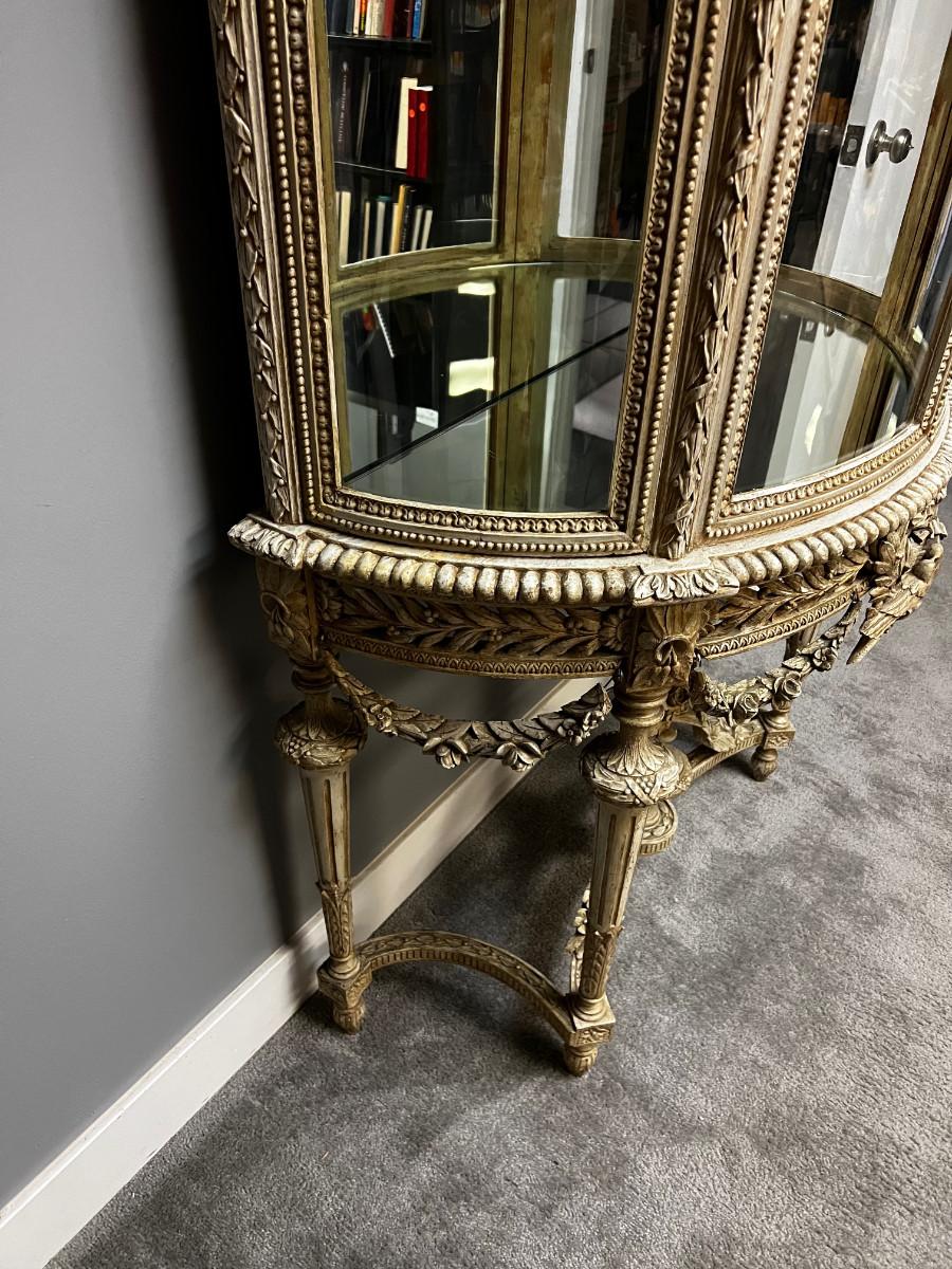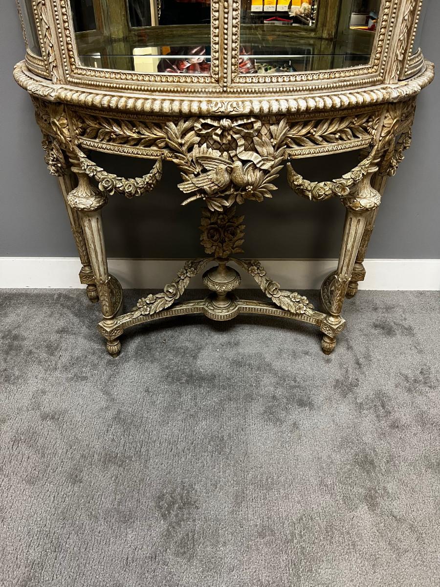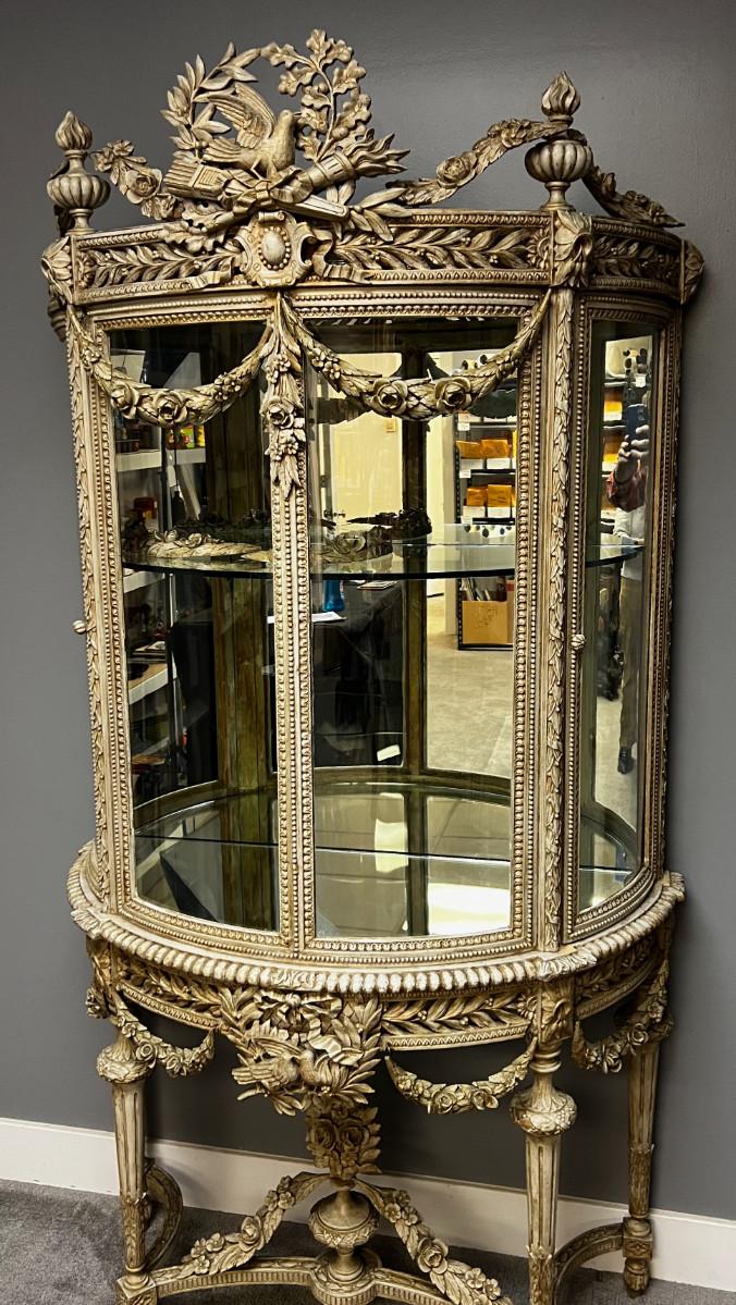 French 18th Century Curio Cabinet, Doves, Roses, Rounded Glass, BEAUTIFUL!
