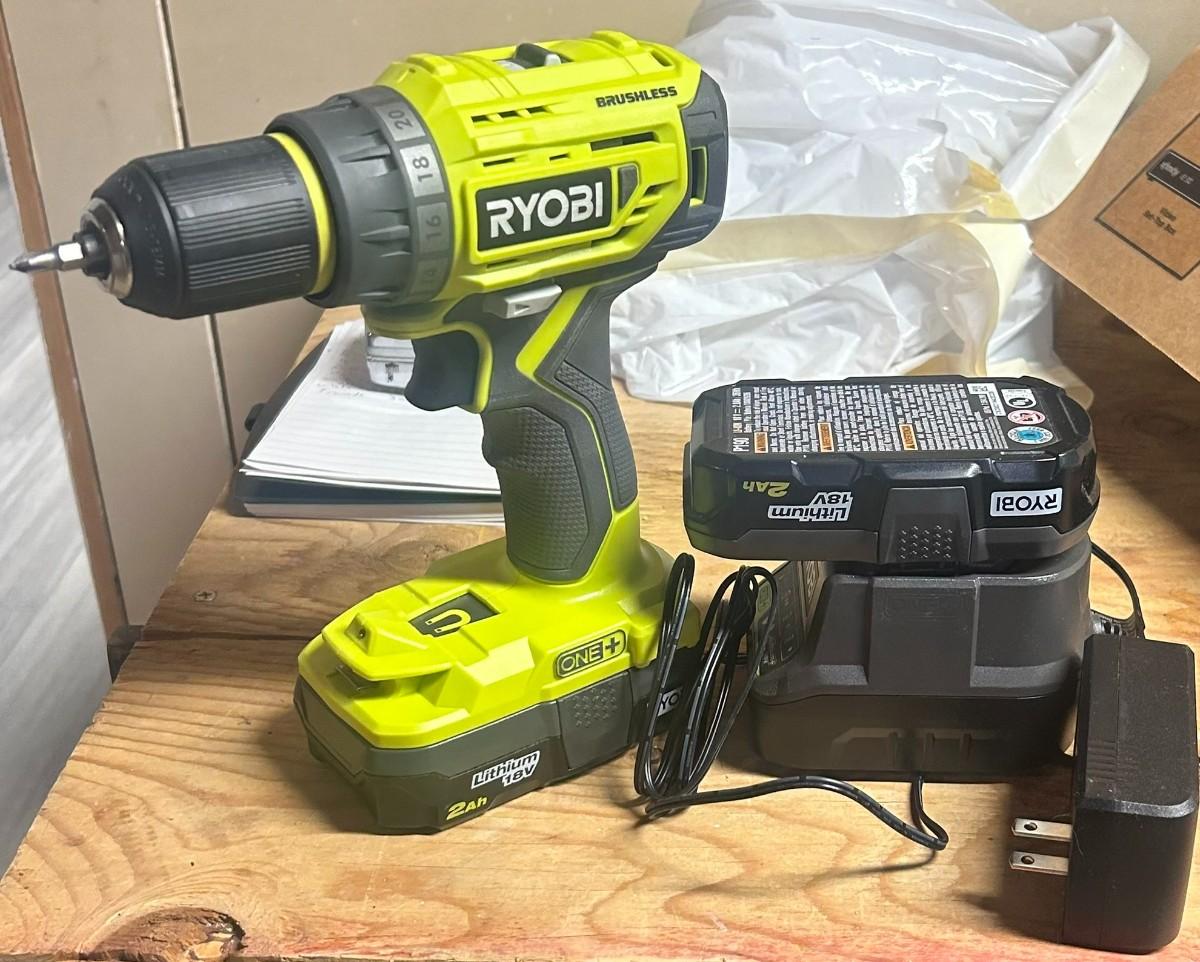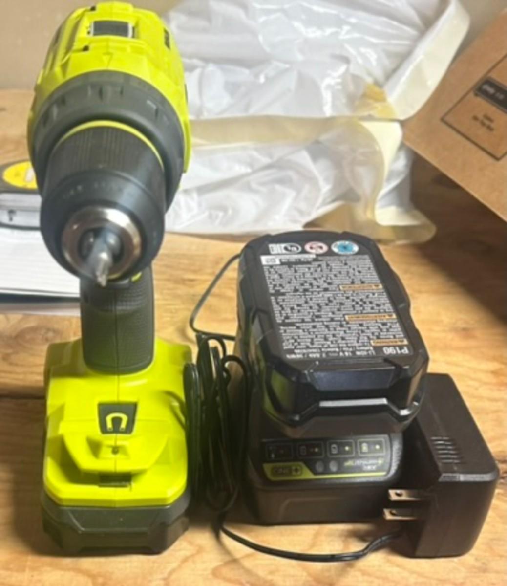 this Ryobi cordless drill driver comes with charger and extra battery.