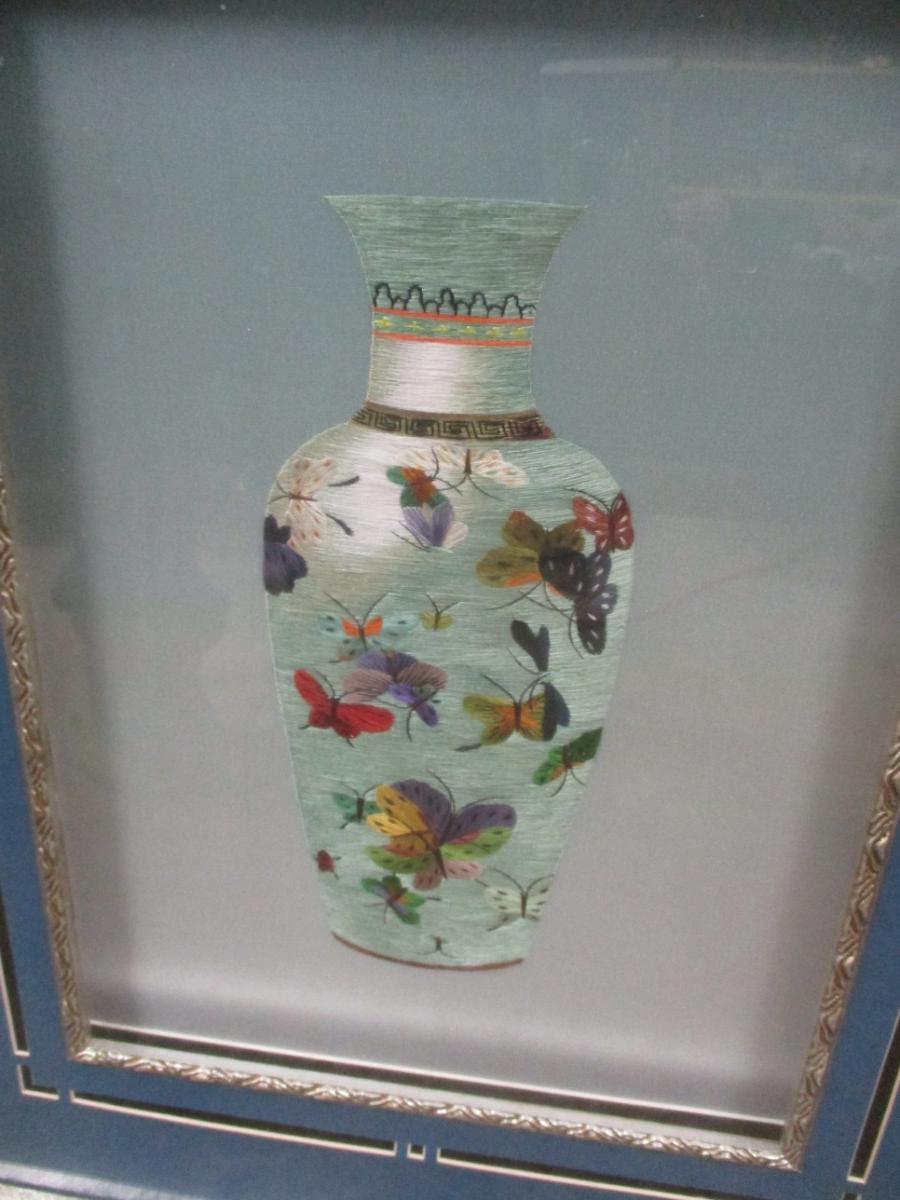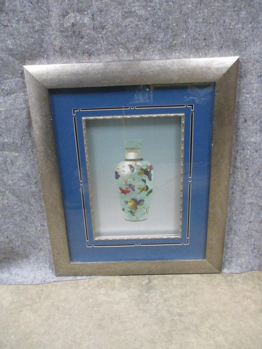 Framed Art Silver Framed Blue Mat Silver Trim Decorated Oriental Vase 19 1/2" x 23 1/2"