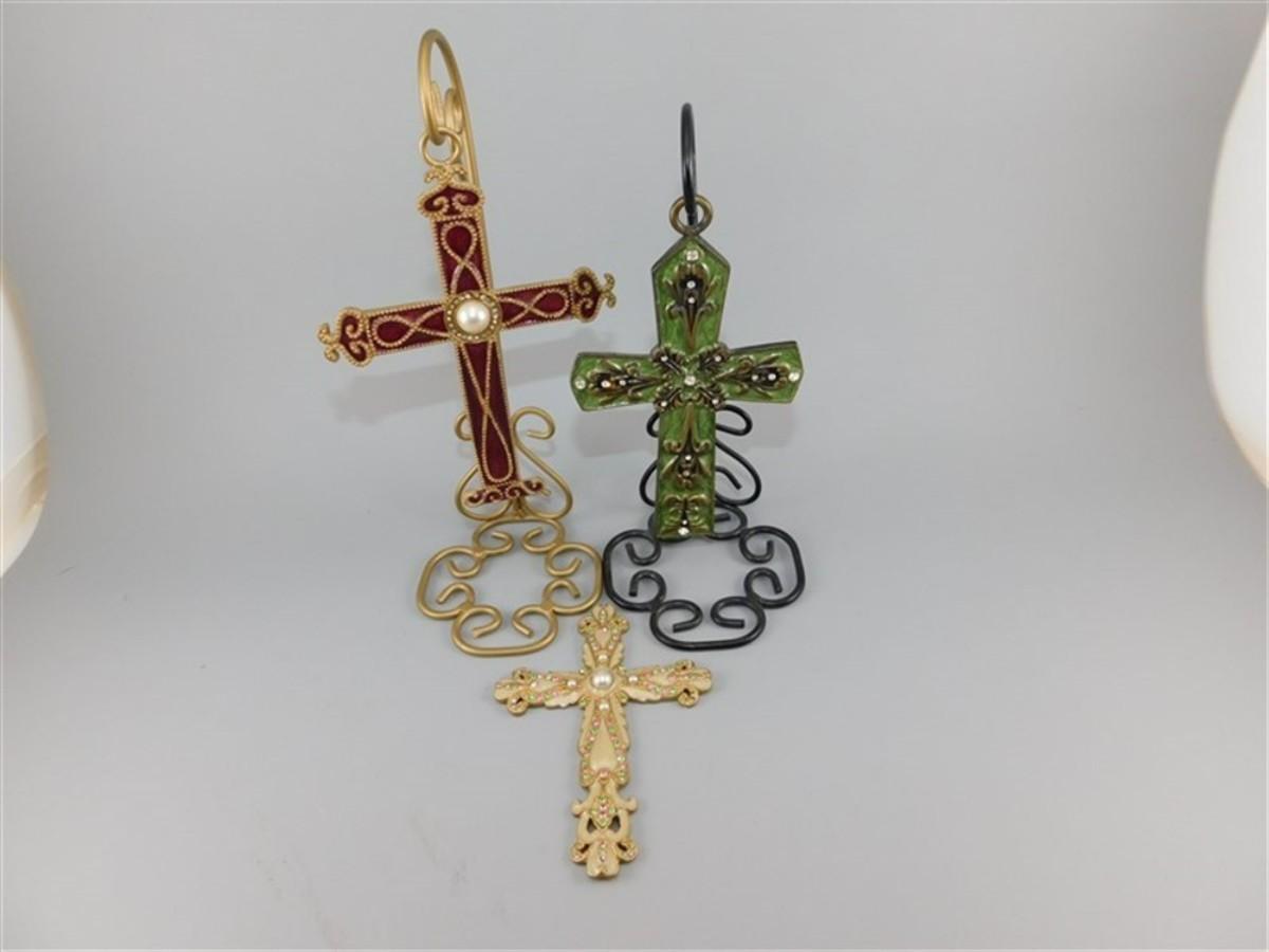 19 4 1/2 -8 1/4 Lot of 3 Decorative Crosses 2 Stands