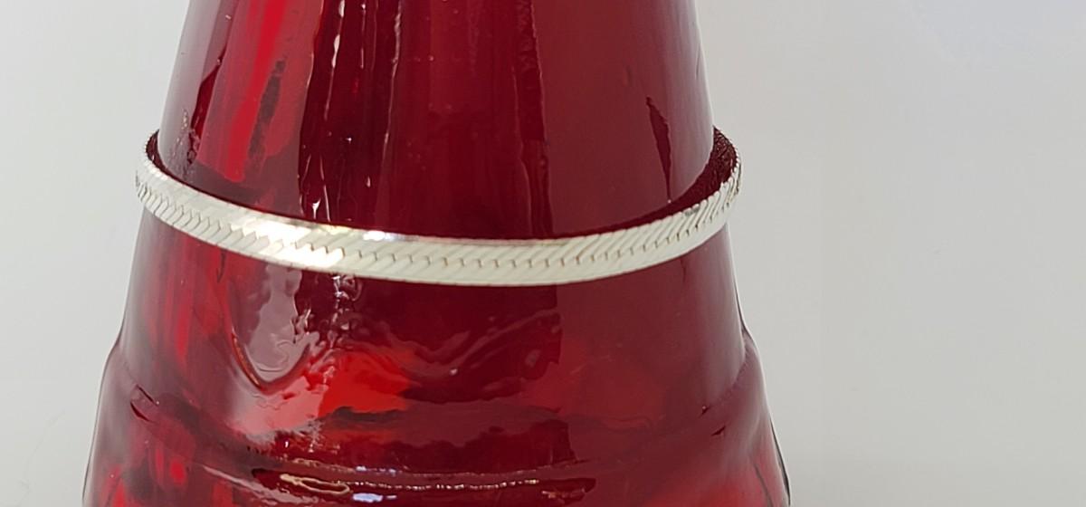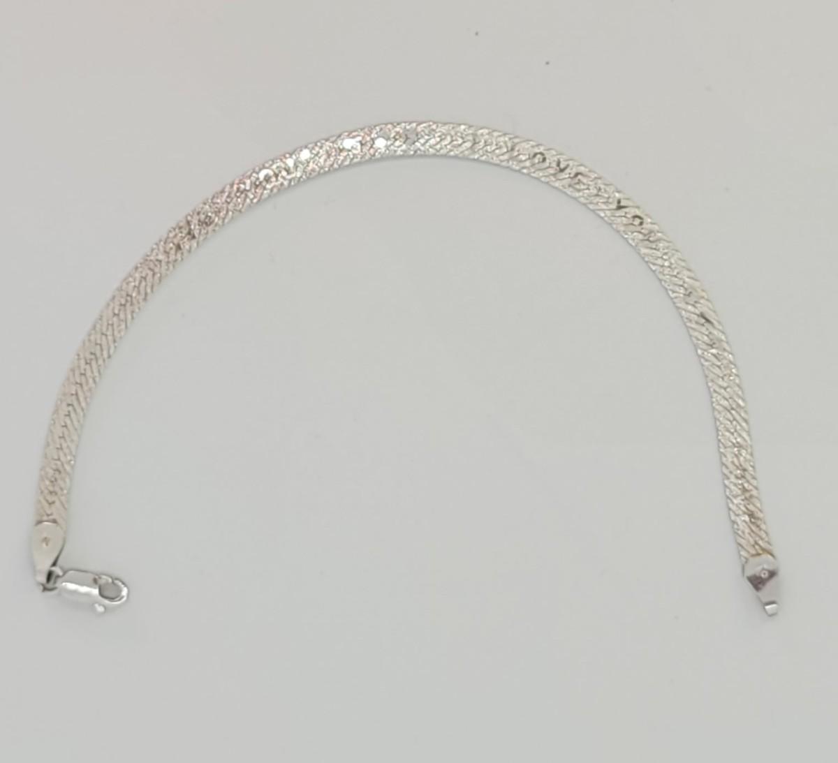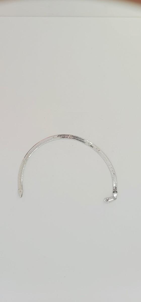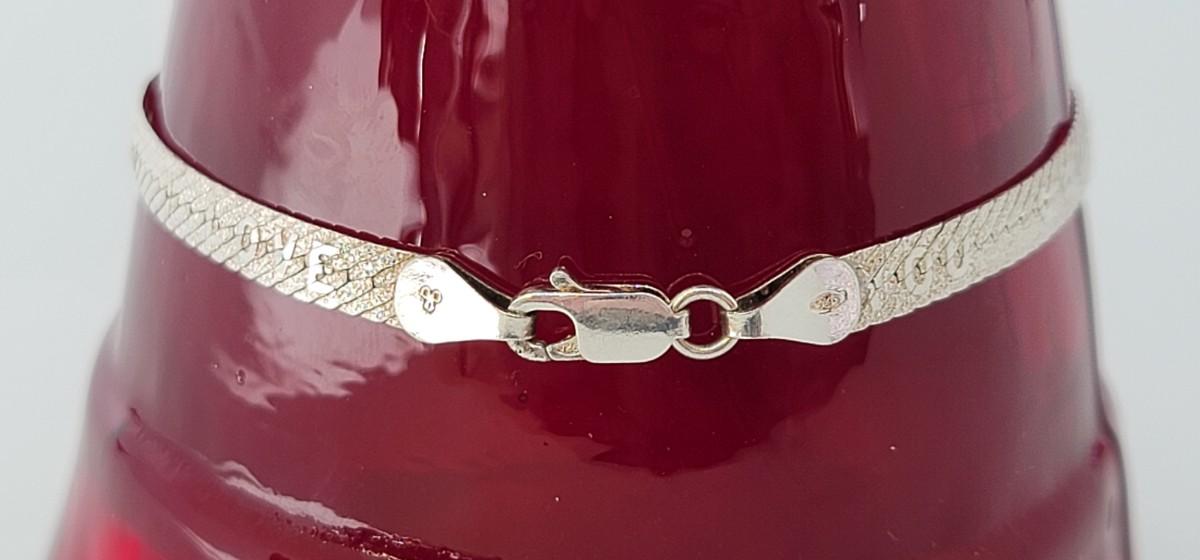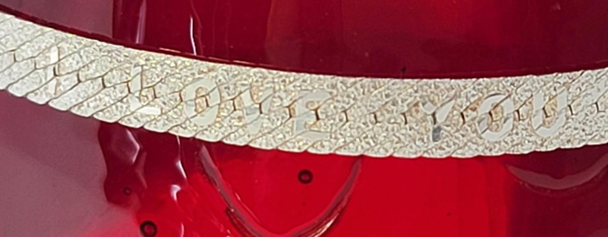 Herringbone Sterling Silver Bracelet with Hearts and the words I Love You.