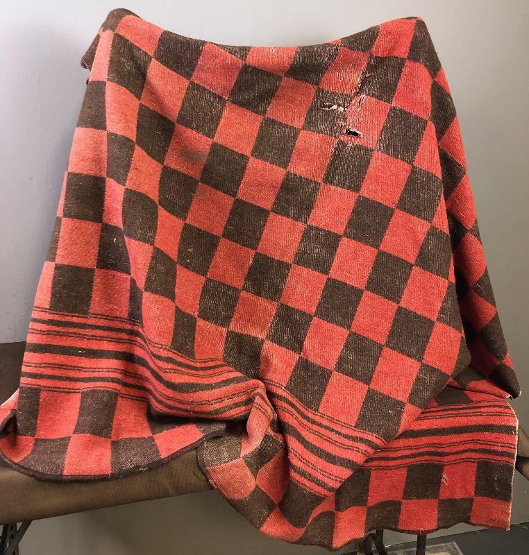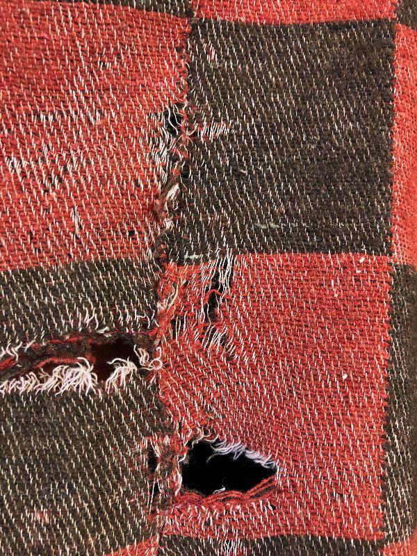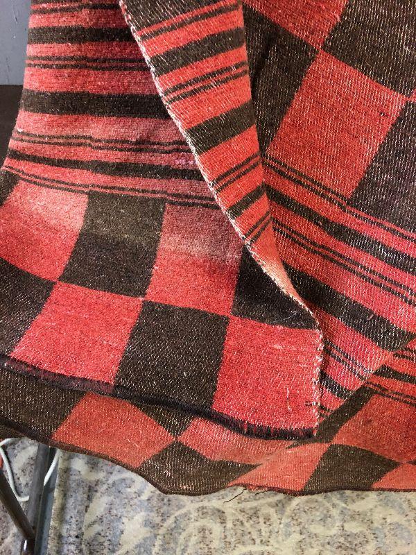 Black and Red Wool 76 x 60" Shows Wear - Circa 1900 - no makers mark Shows wear in the center.