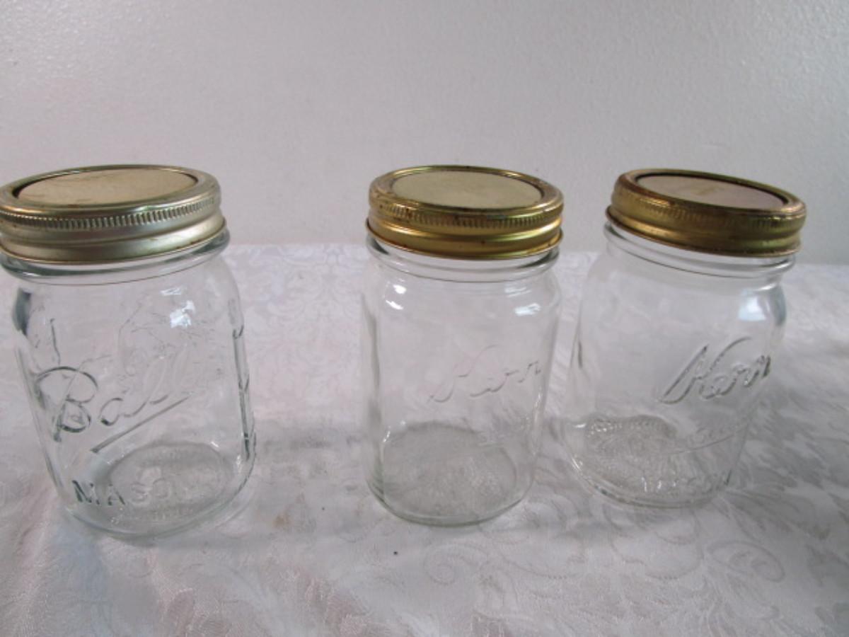3 Qt jars, 3 pt jars, 4 jelly jars, 5 1/2-pt. jars, 4 1/4-pt jars, see pictures
