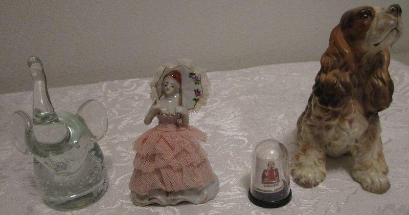 #19 Dog, Crystal Elephant, Thimble, Lady with Parasol