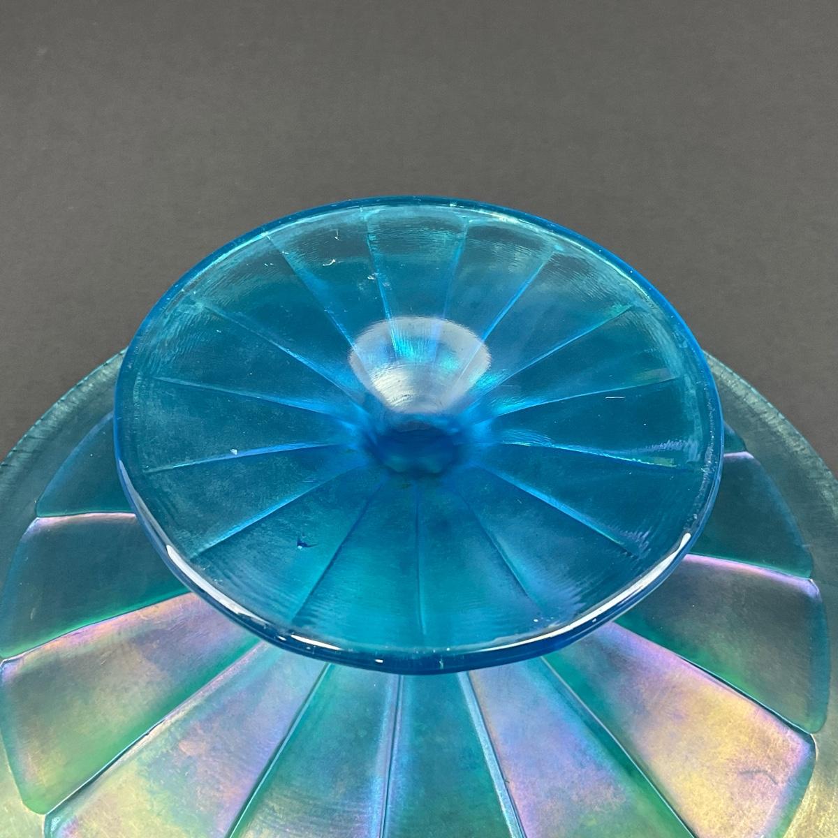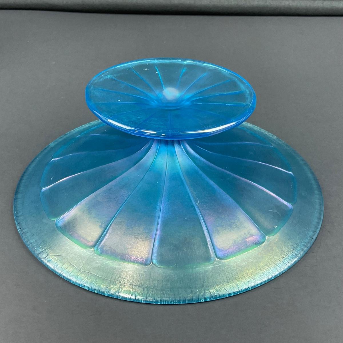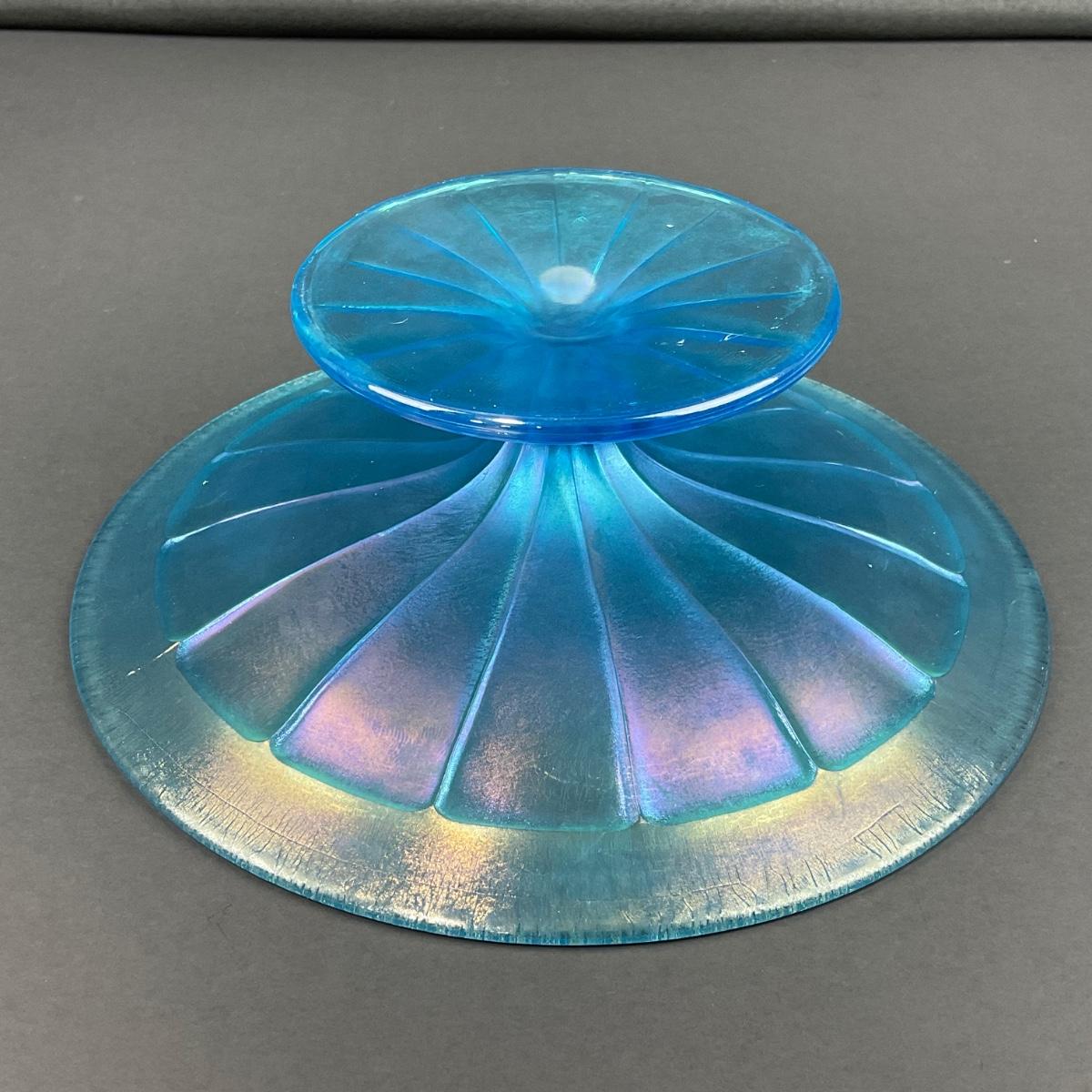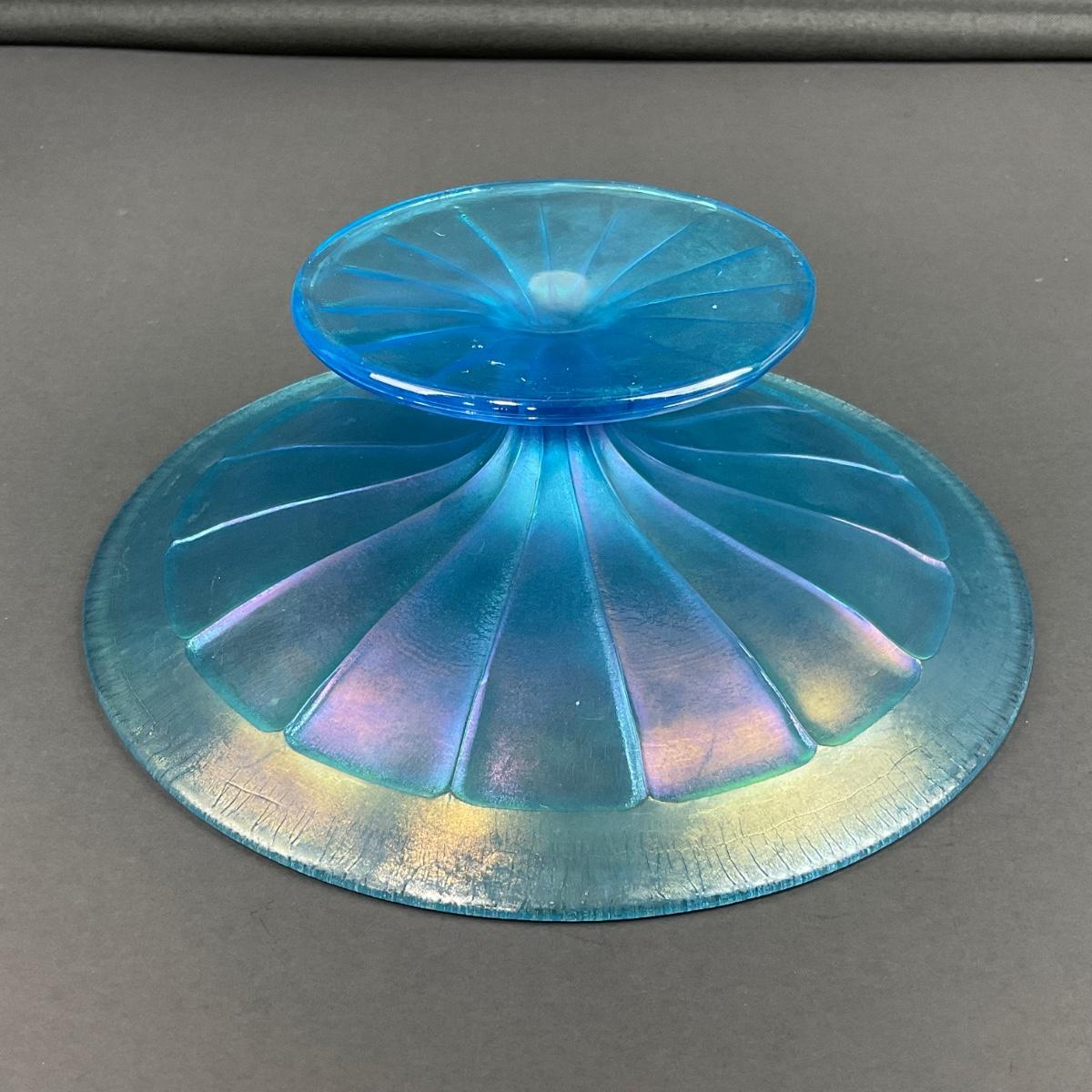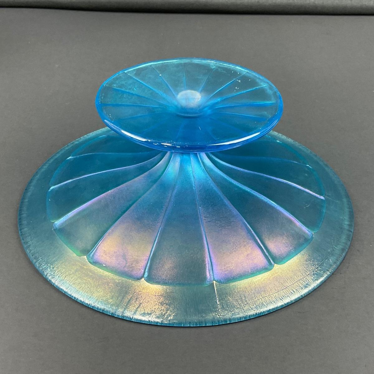 -19- FENTON | Wheel Cut Celeste Blue Iridescent Pedestal Dish