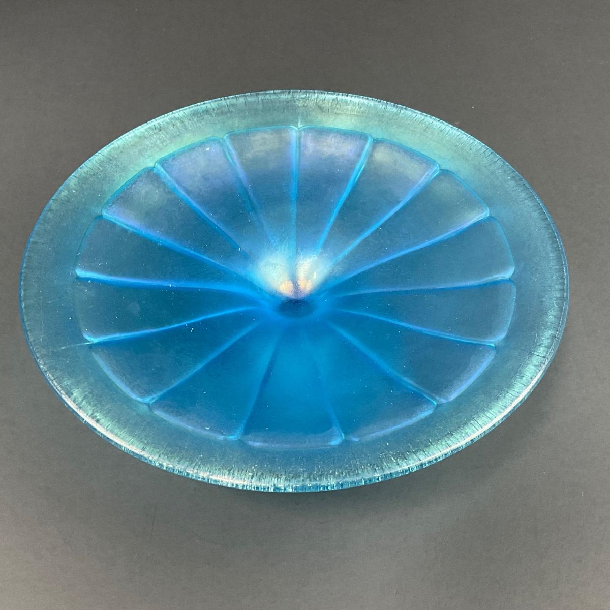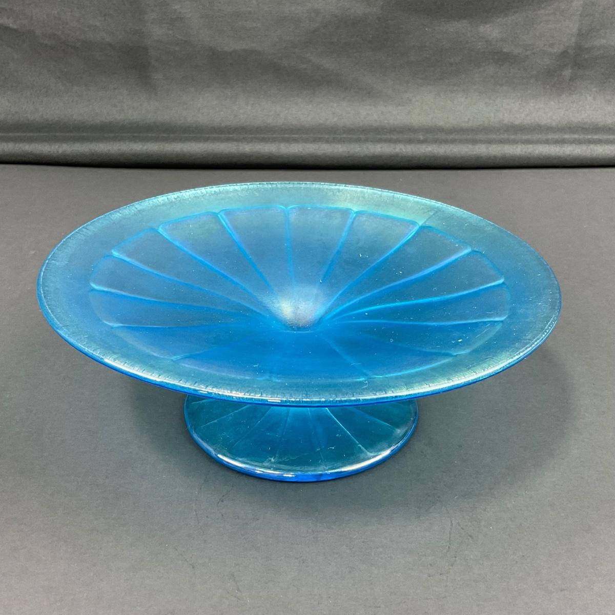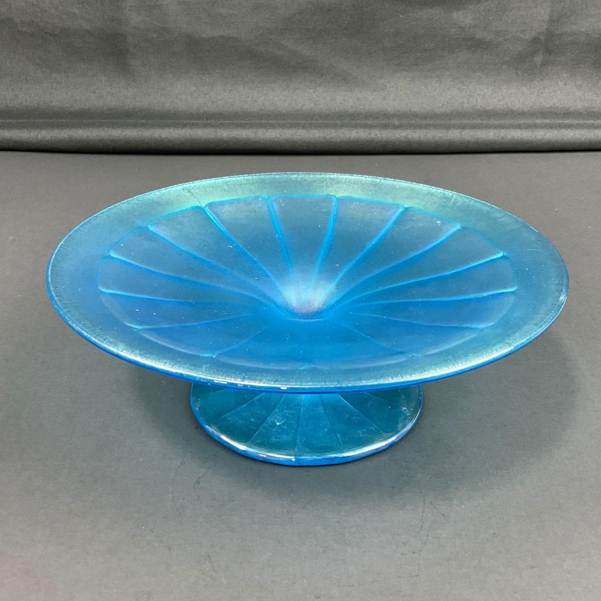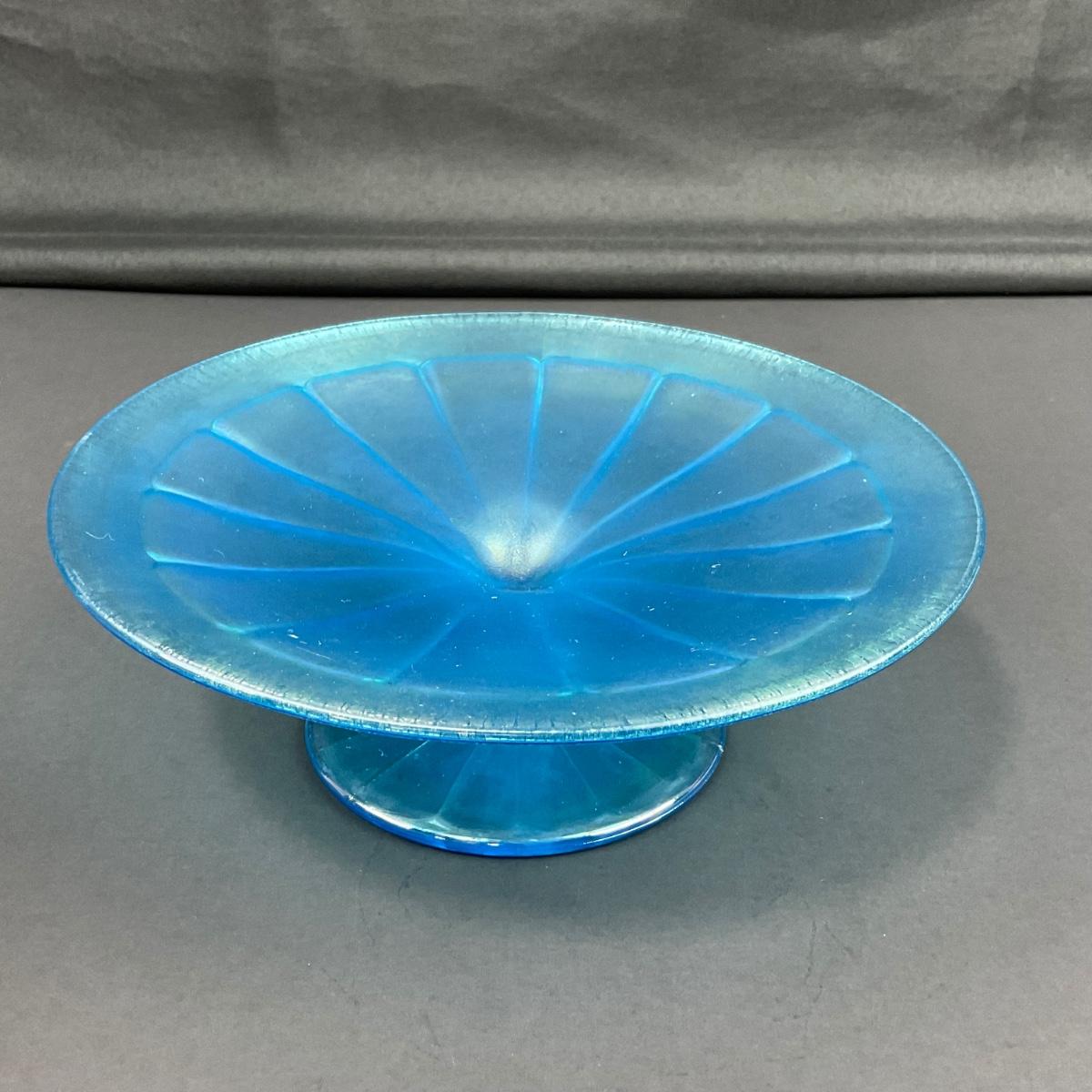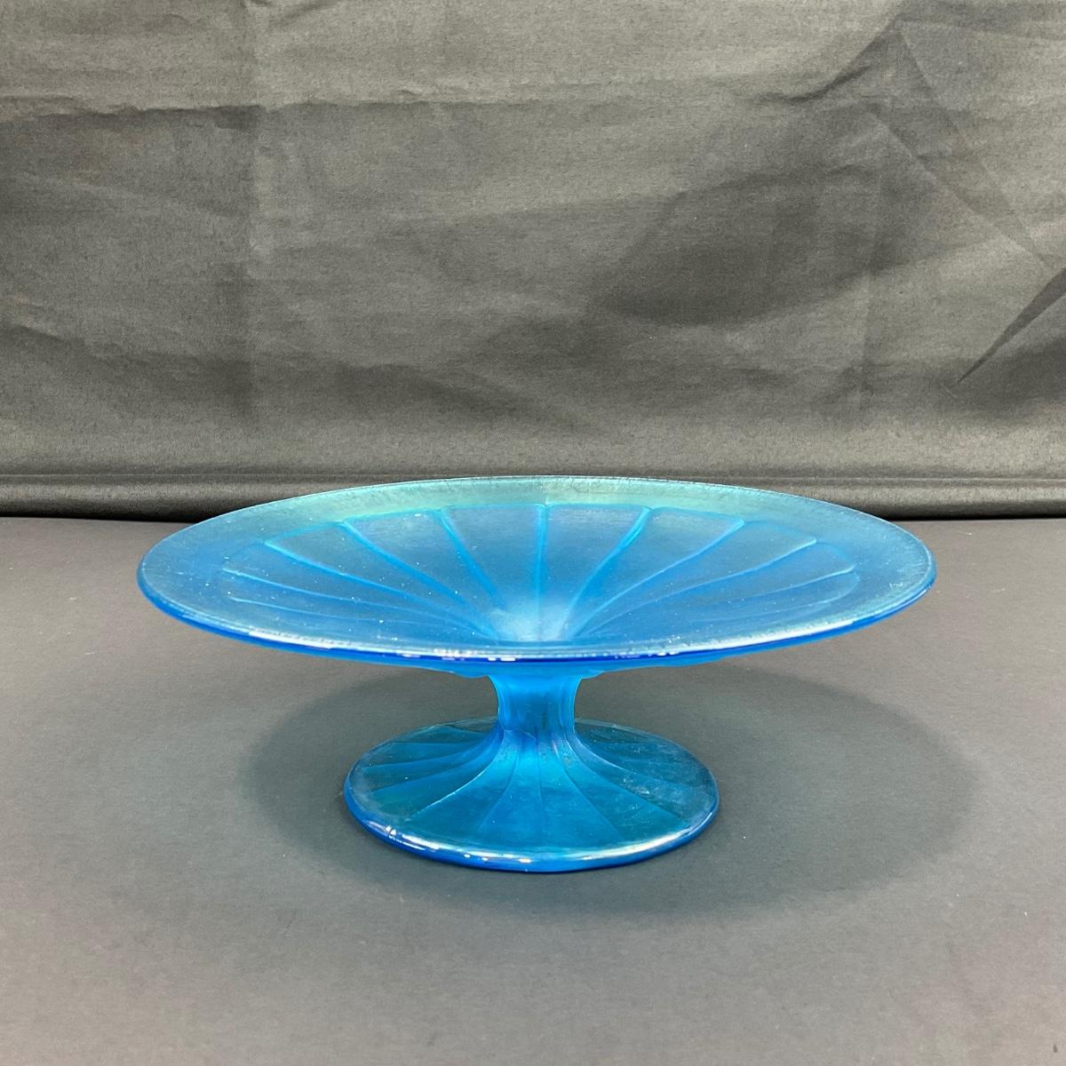 -19- FENTON | Wheel Cut Celeste Blue Iridescent Pedestal Dish