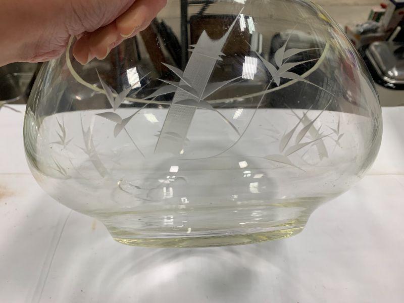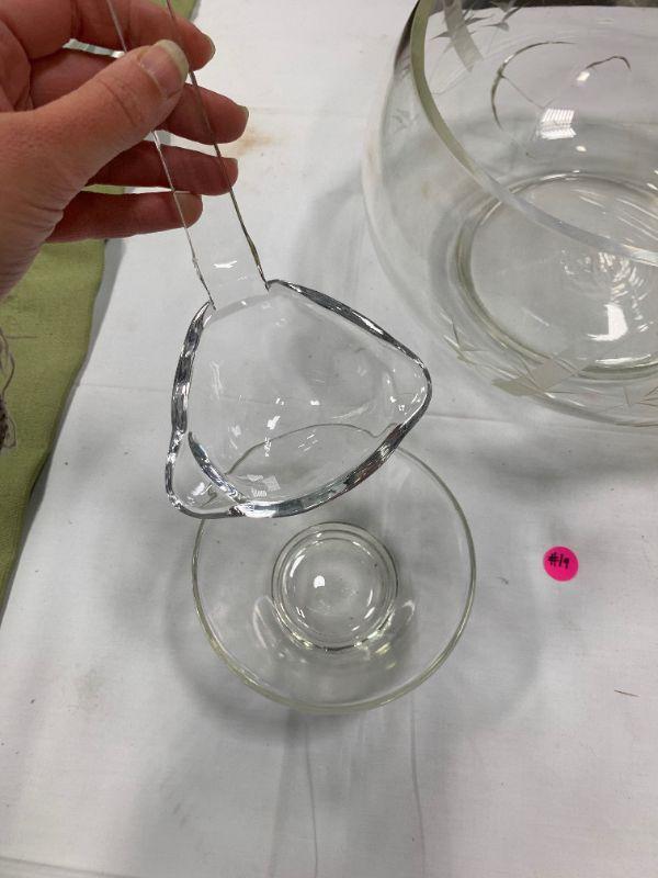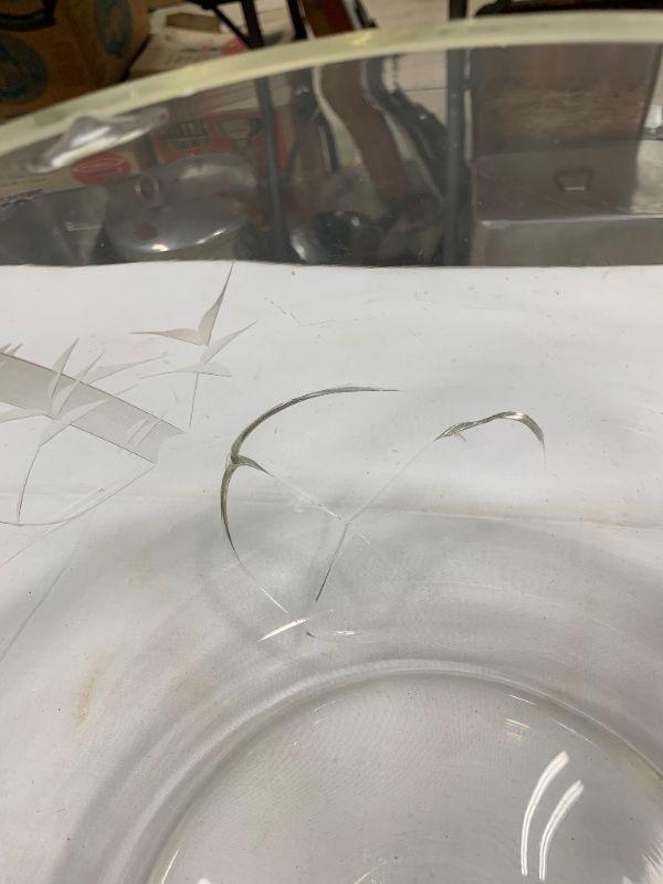 3pc Glass bowl has crack in it. Liquid doesn't spill out.