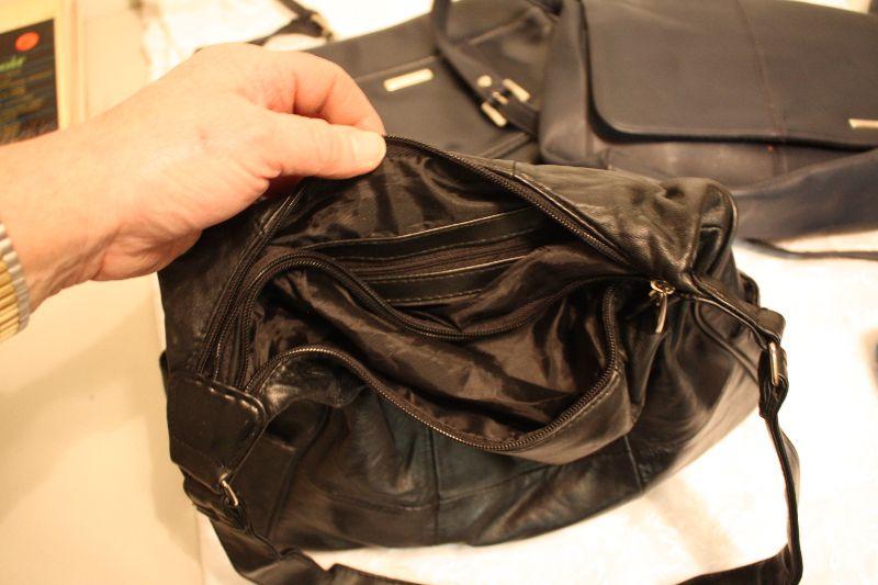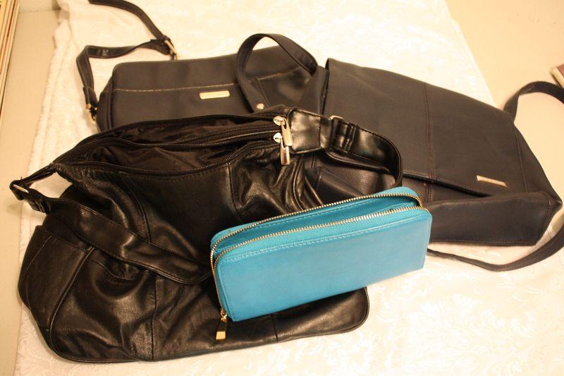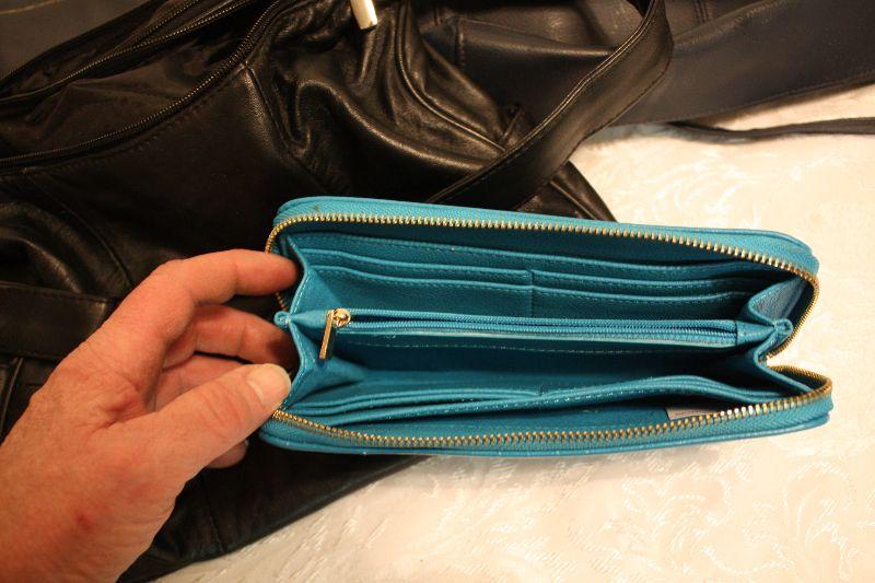 Liz Claiborne black handbag, Liz Claiborne navy handbag, larger black handbag, teal wallet