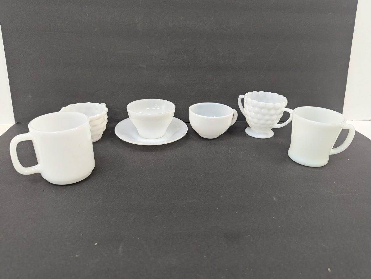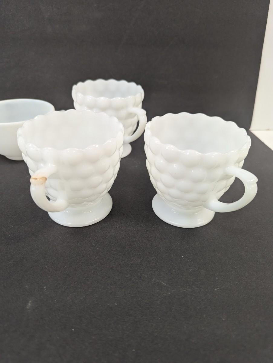 #17 Coffee Cup, 3 Big Bubble sugar dish, 1 small bubble sugar dish, 2 anchor Hocking suburbia 6 teacup and 6 saucers