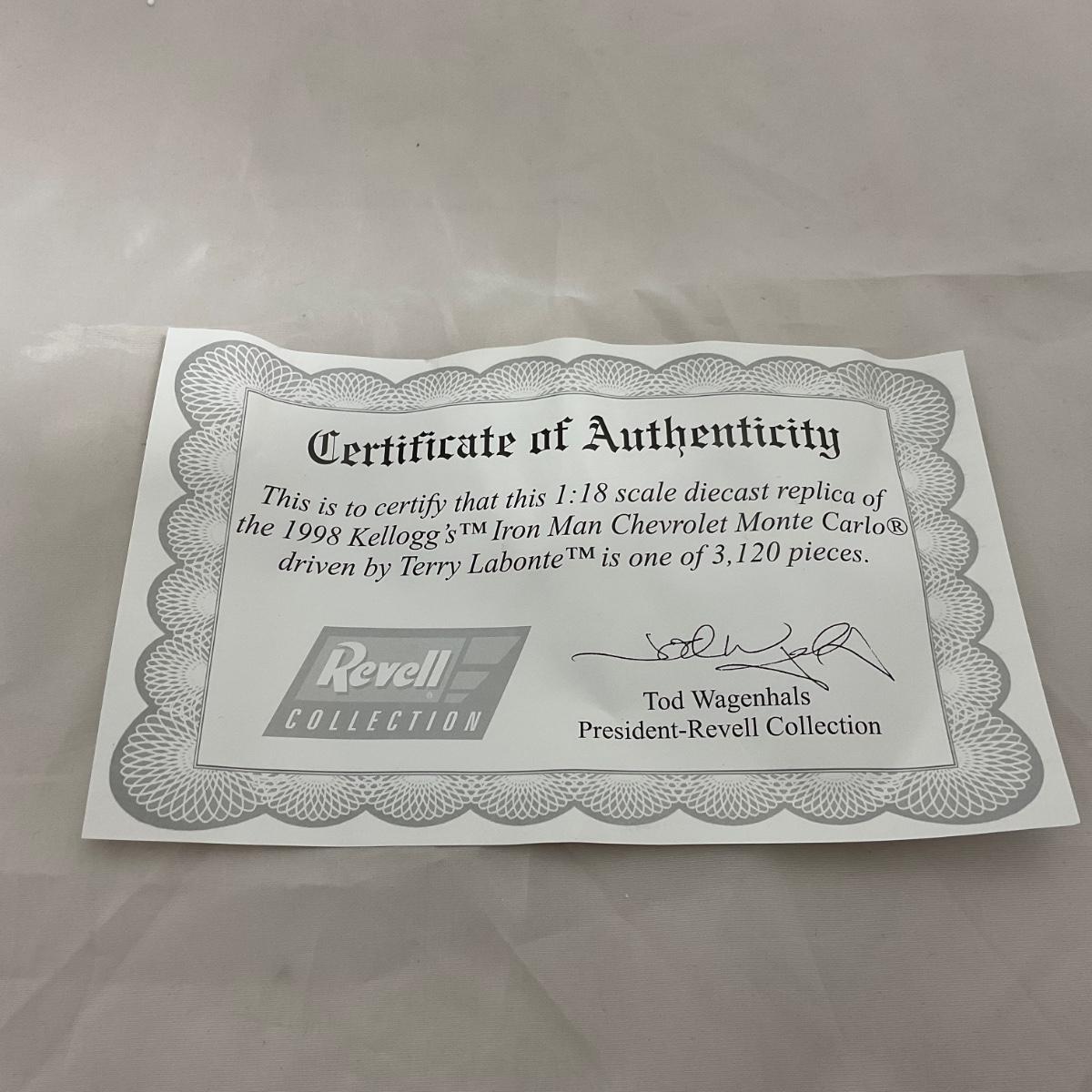 One NASCAR die cast 1:18 scale 1998 Kellogg Iron Man Chevrolet Monte Carlo figure. Terry Labonte. Comes with a Certificate of Authenticity. Please see photos for details and condition. ::: Shipping is available on this lot. If you require shipping you must let us know at the close of the auction. We will coordinate with you after the item has been won. Shipping fees will include insurance up to or exceeding the value of all items being mailed. If you have any questions regarding this lot please contact the auctioneer either via this website, by direct email or by phone. PICK UP TIMES and other important information can be found in the TERMS and DESCRIPTION of the auction. Please take a look for pertinent information. Thanks!