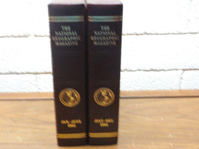 19?? National Geographic Magazine - complete set of 12 with faux leather cases Cases in great condition Books in normal good condition