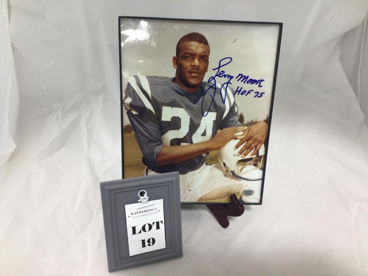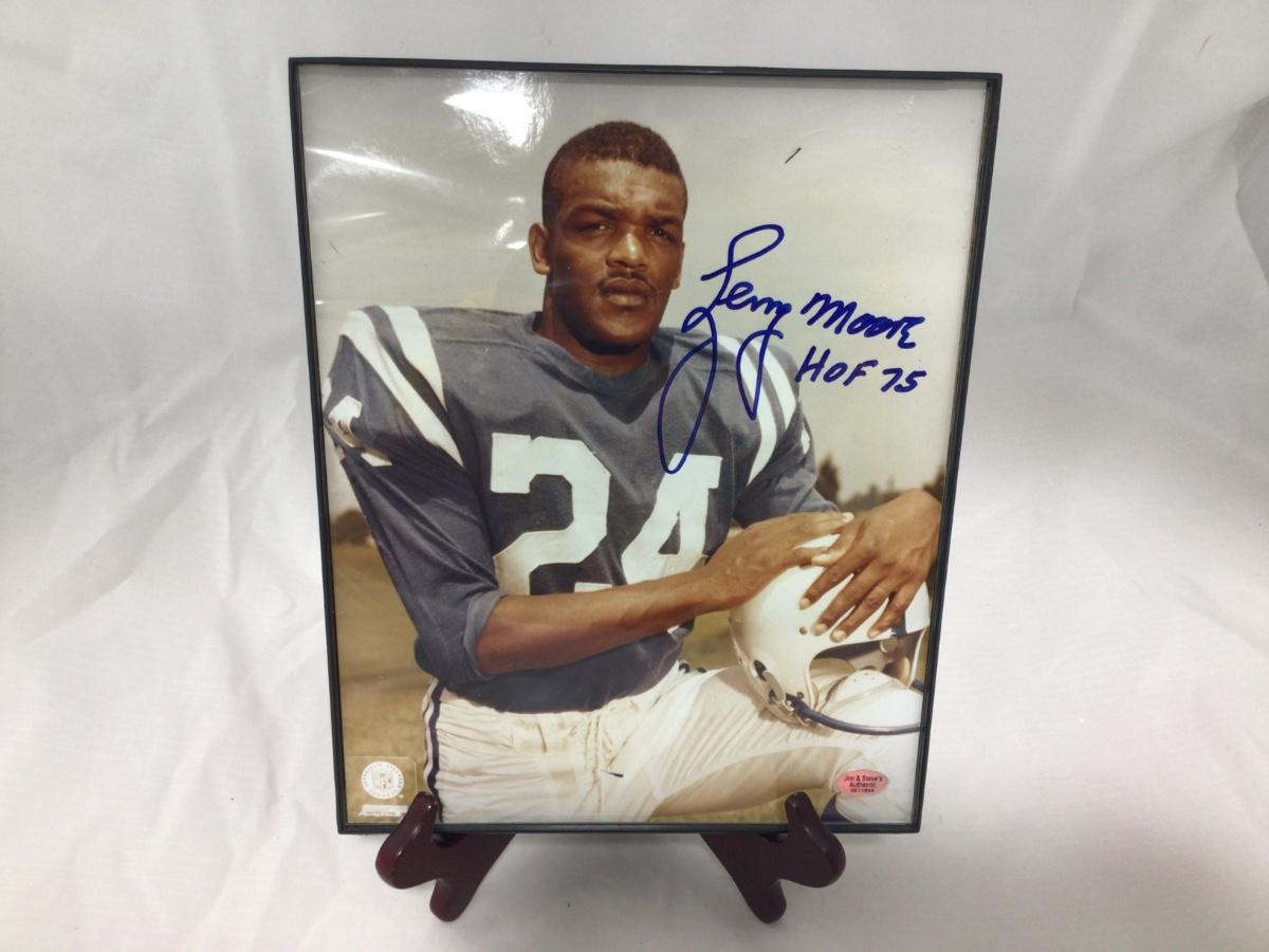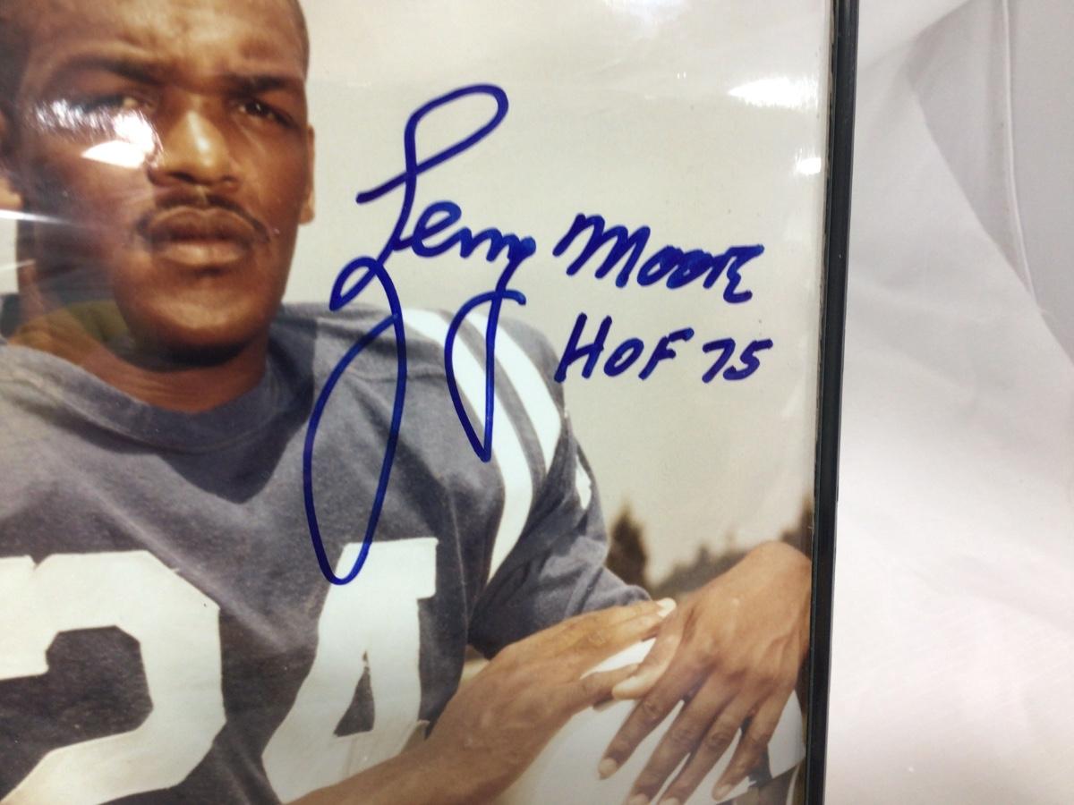 HOF Larry Moore picture Signed with Certificate of Authenticity. Eight by ten inches. Please see photos for details and condition. ::: Shipping is available on this lot. If you require shipping you must let us know at the close of the auction. We will coordinate with you after the item has been won. Shipping fees will include insurance up to or exceeding the value of all items being mailed. If you have any questions regarding this lot please contact the auctioneer either via this website, by direct email or by phone. PICK UP TIMES and other important information can be found in the TERMS and DESCRIPTION of the auction. Please take a look for pertinent information. Thanks!