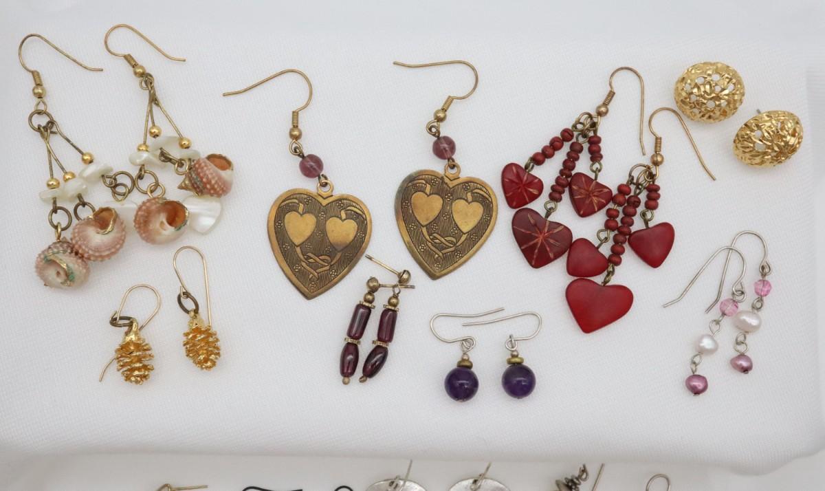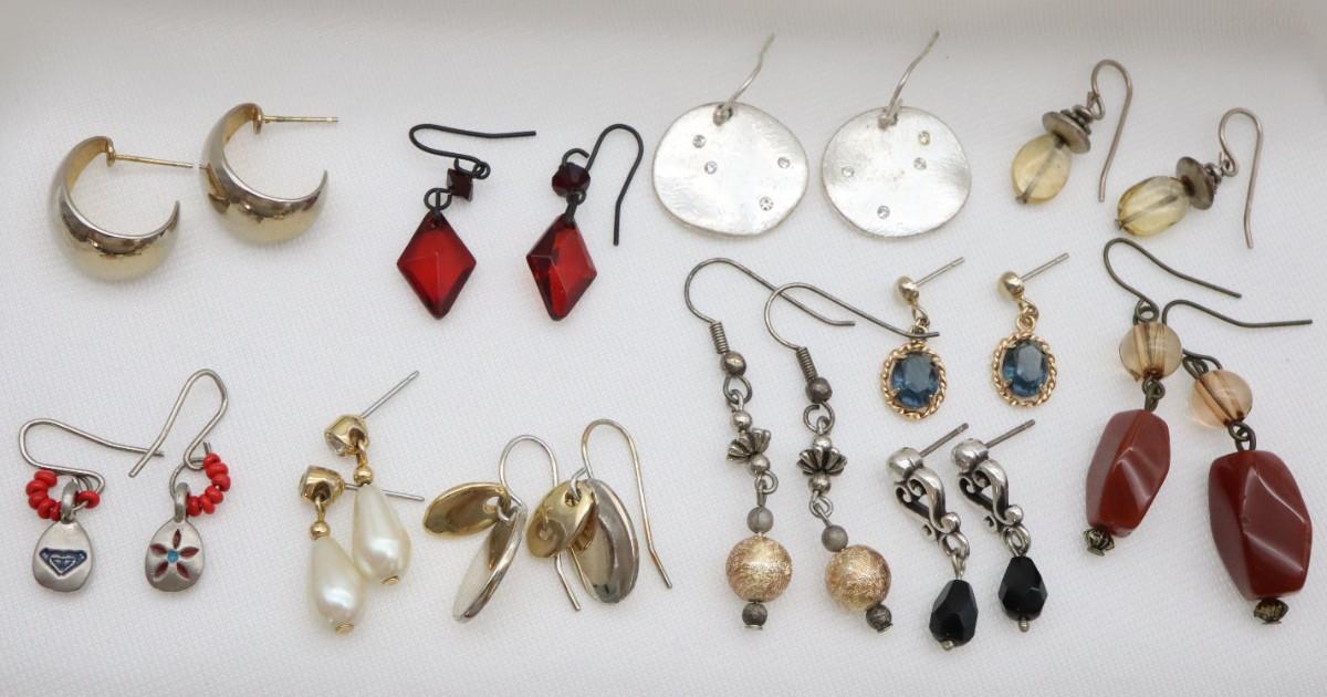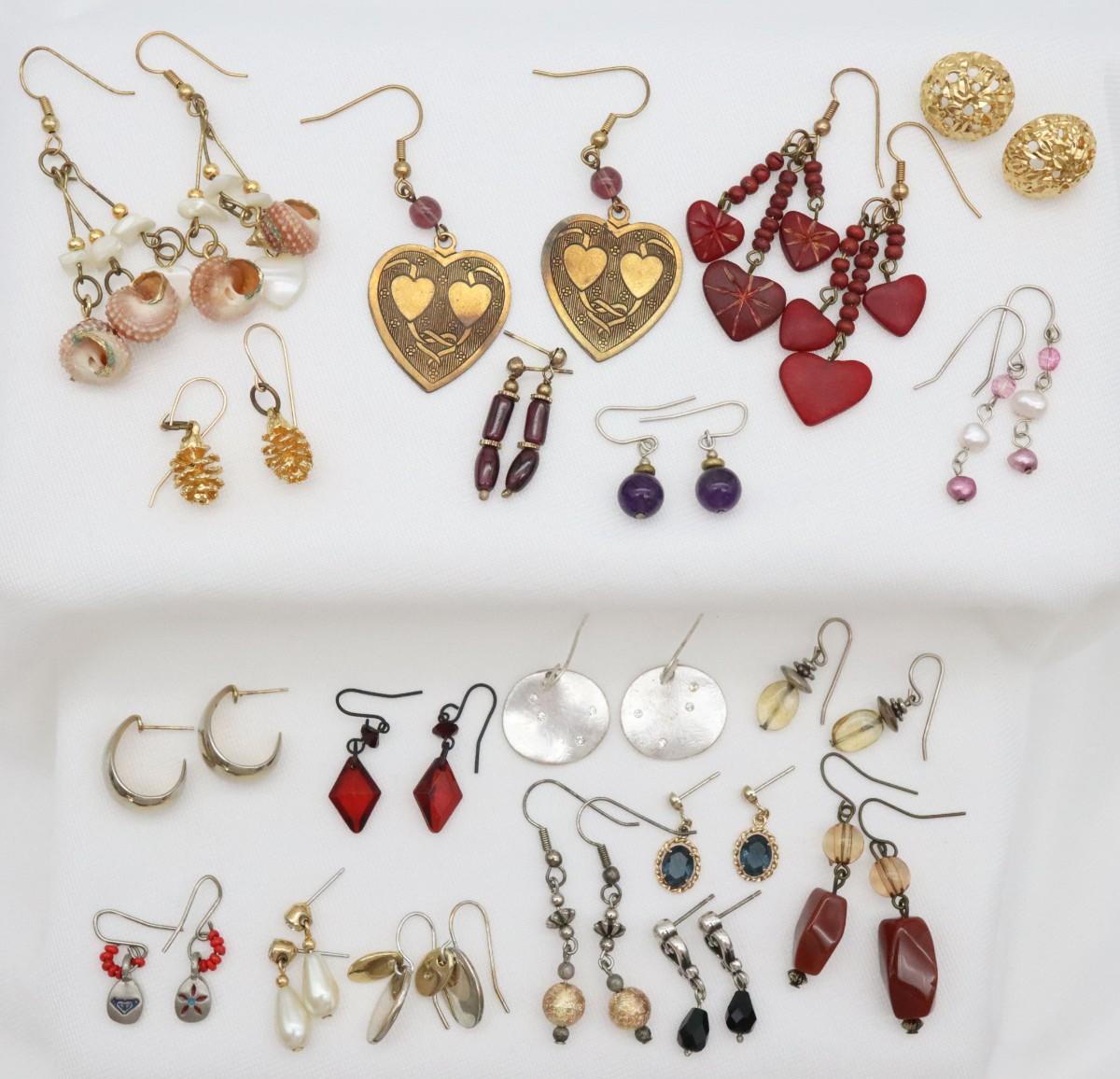 19 pairs of Earrings, mostly dangle. Please note not all earrings have earring backs.