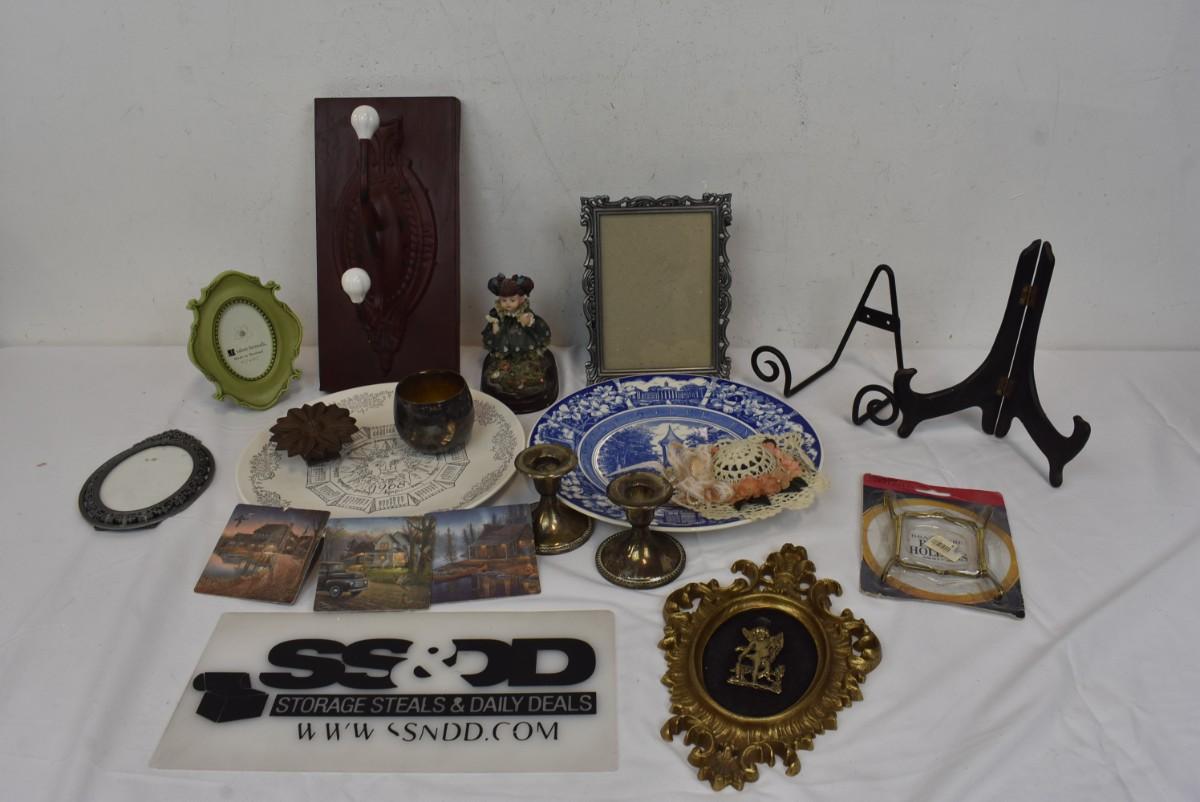 19 pc Home Goods: Coat Hanger, Picture Frames, Coasters, Plates, etc