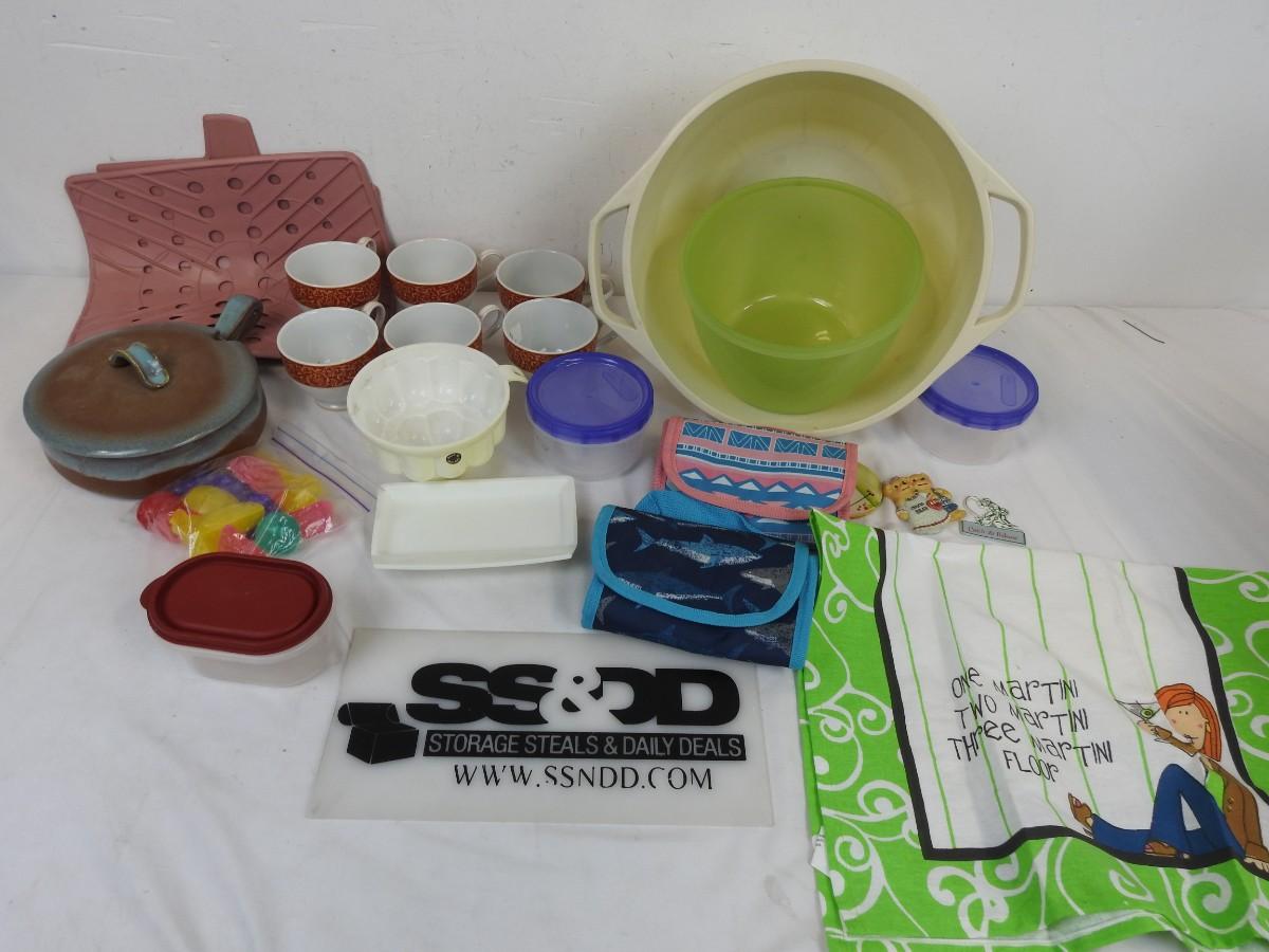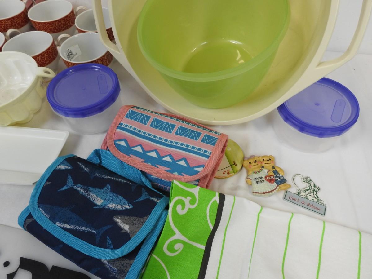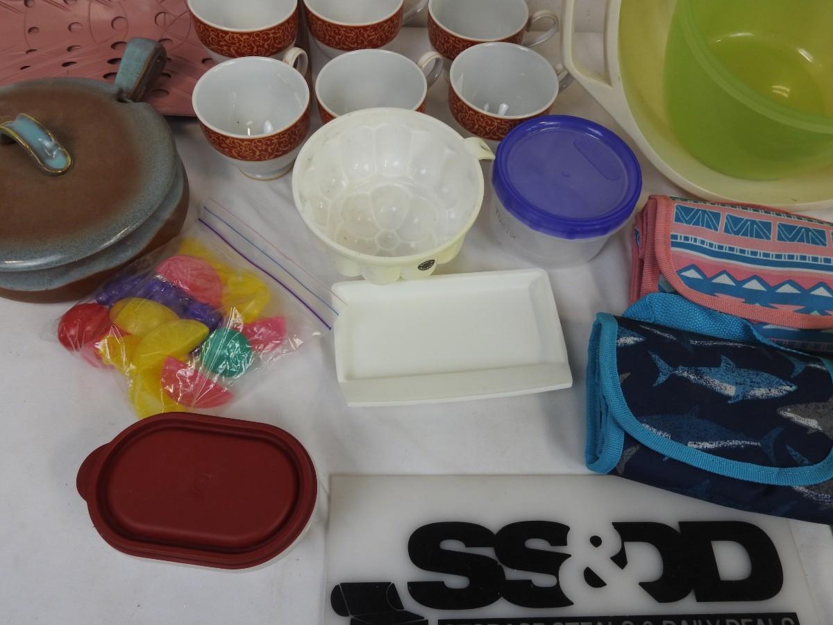 19 pc Kitchen: Lunch Bags, Mikasa Mugs, Bowls, Reusable Ice Cubes