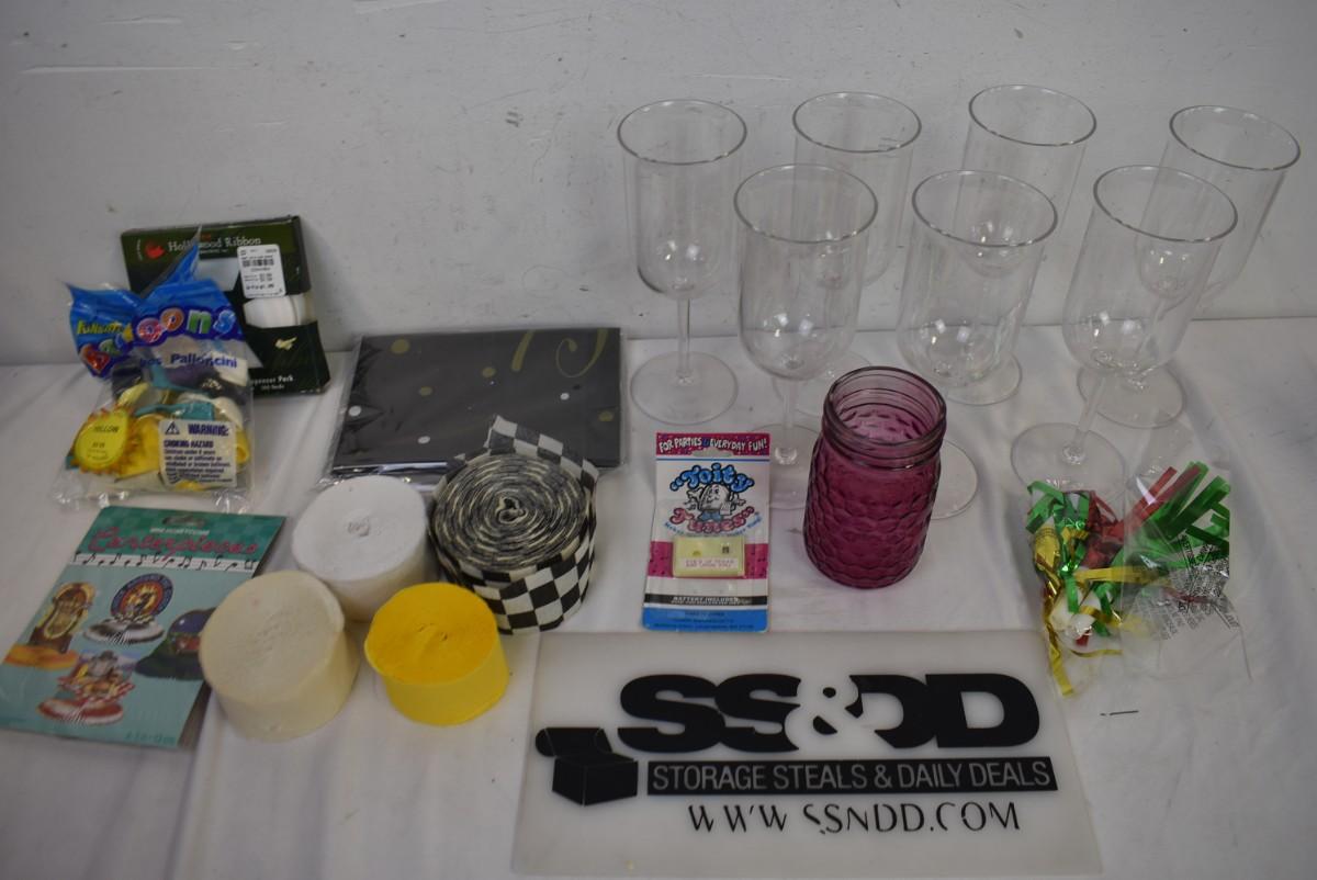 19 pc Party Supplies, Plastic Goblets, Streamers, Toity Tunes, Balloons