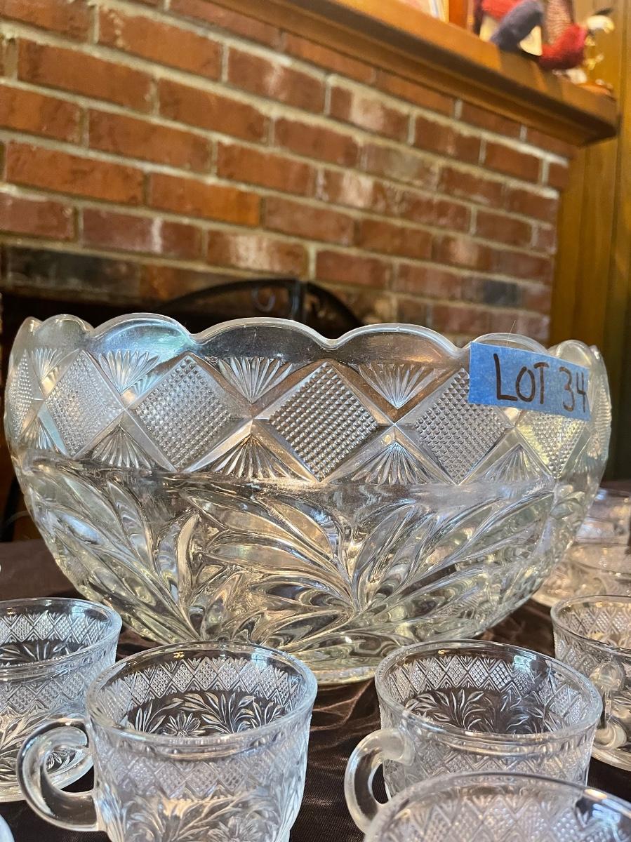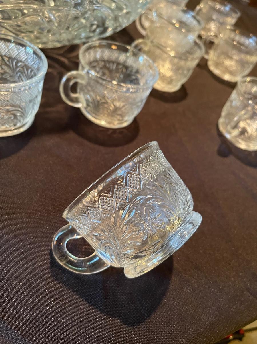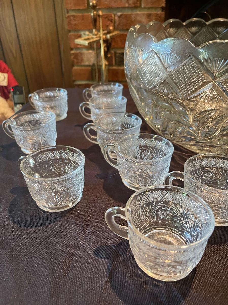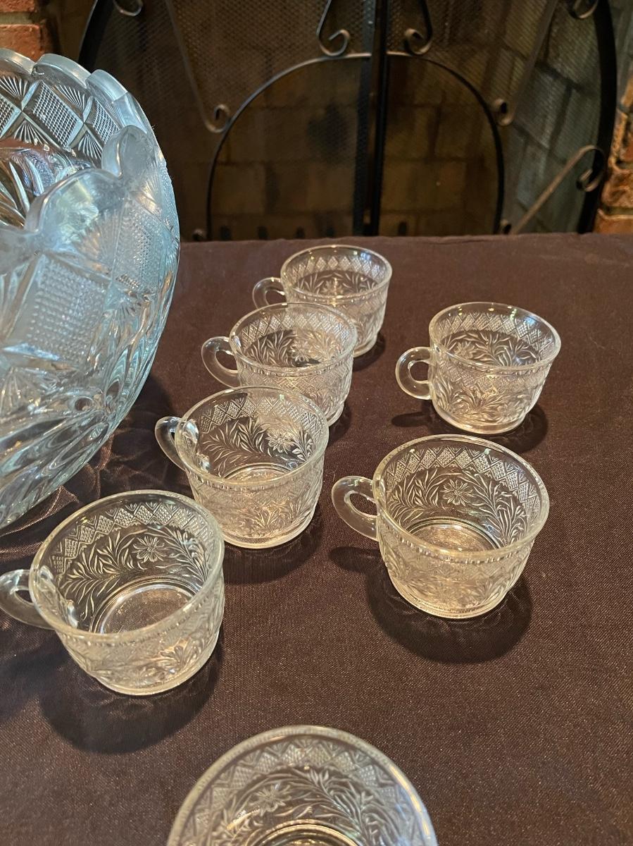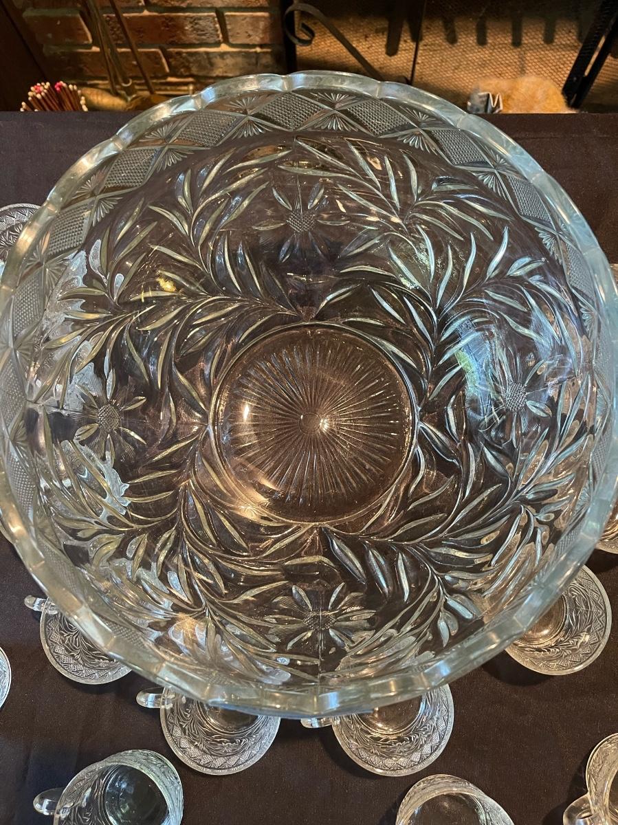 Beautiful 19 piece Etched Glass Punch Bowl & Glasses set