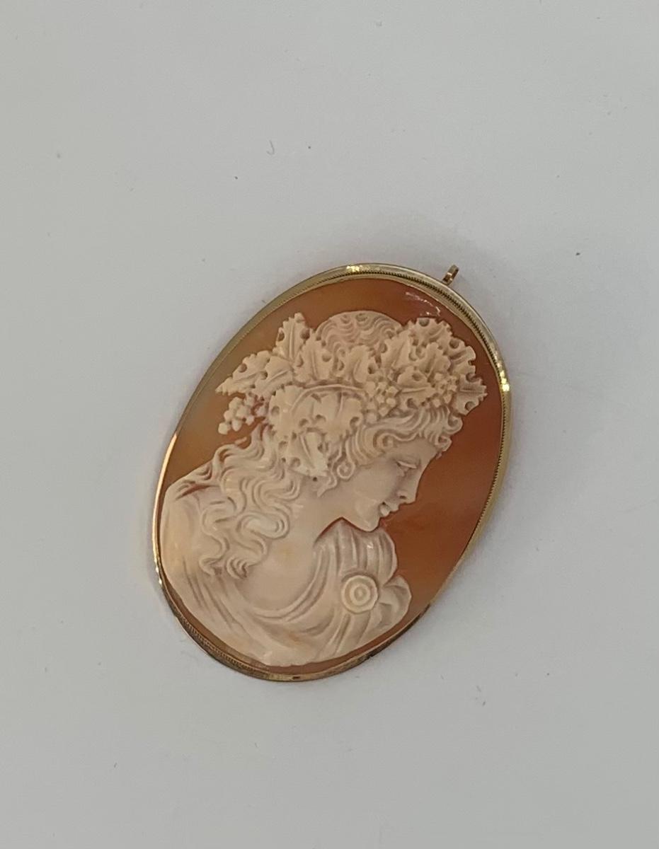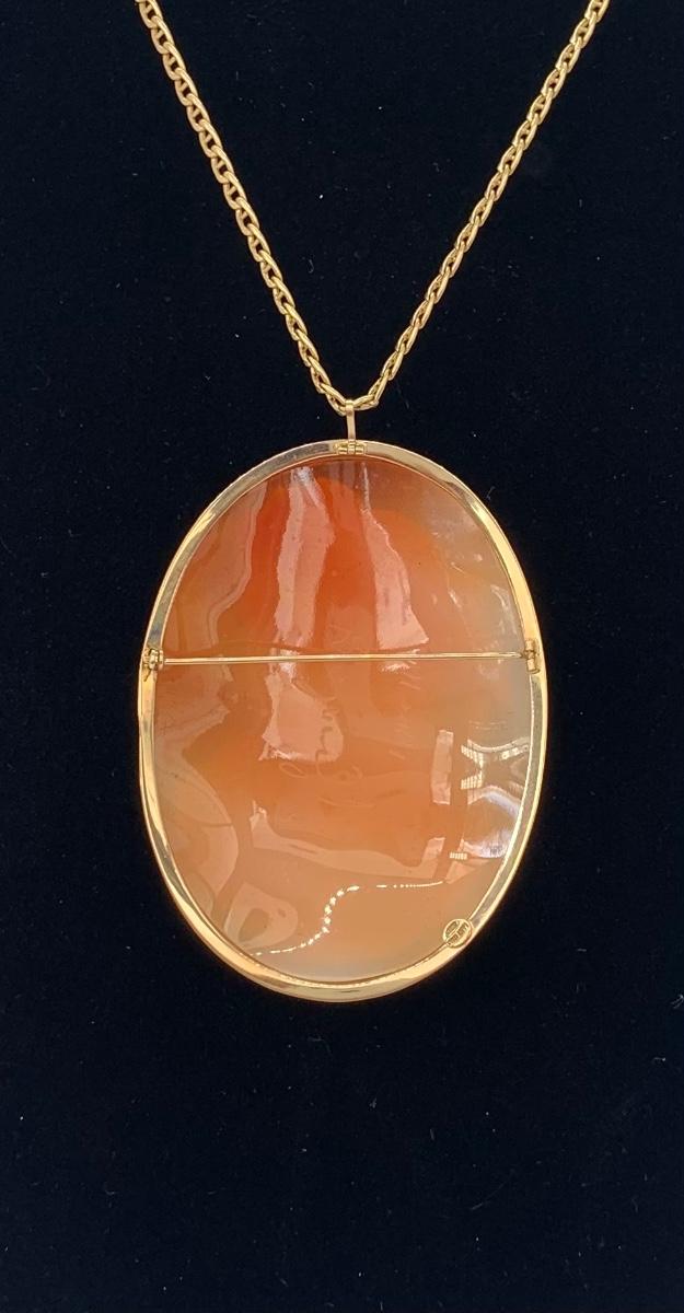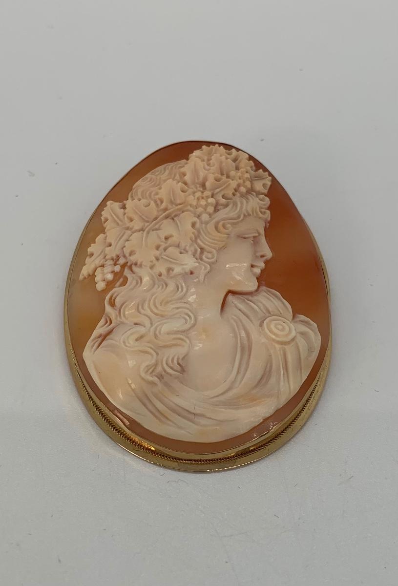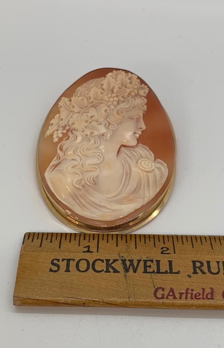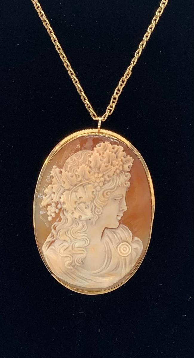 19: New with box Large and Lovely Sardonyx Shell Cameo M&M Scognamiglio Cameo Pendant/Brooch