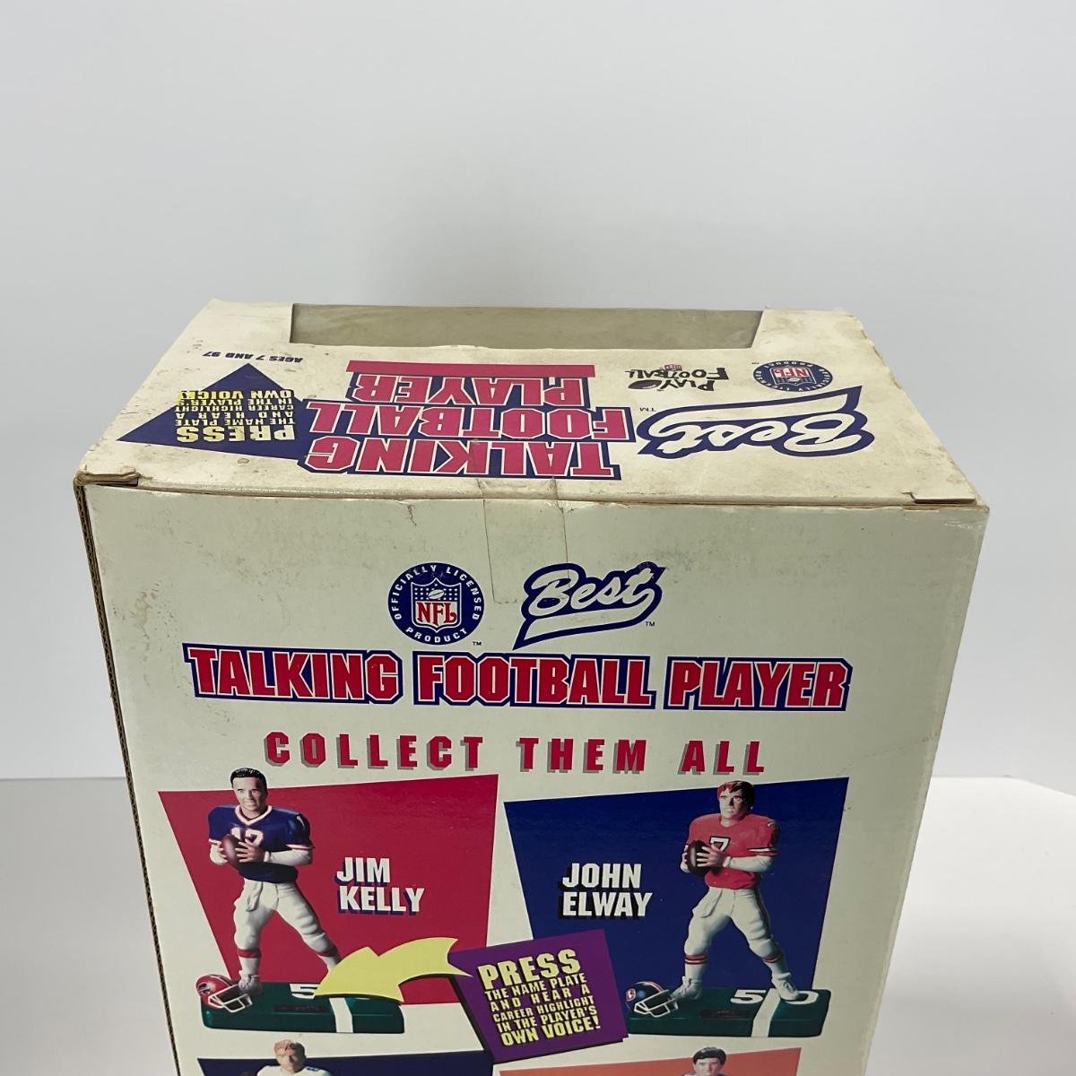 One vintage talking John Elway figure in box. Box does have some damage. 8 inches by 12 inches. Please see photos for details and condition. ::: Shipping is available on this lot. If you require shipping you must let us know at the close of the auction. We will coordinate with you after the item has been won. Shipping fees will include insurance up to or exceeding the value of all items being mailed. If you have any questions regarding this lot please contact the auctioneer either via this website, by direct email or by phone. PICK UP TIMES and other important information can be found in the TERMS and DESCRIPTION of the auction. Please take a look for pertinent information. Thanks!