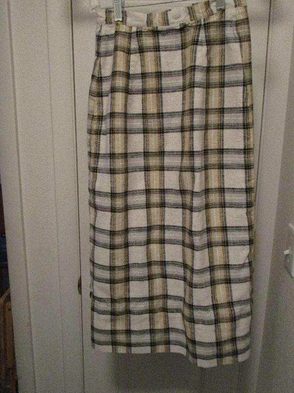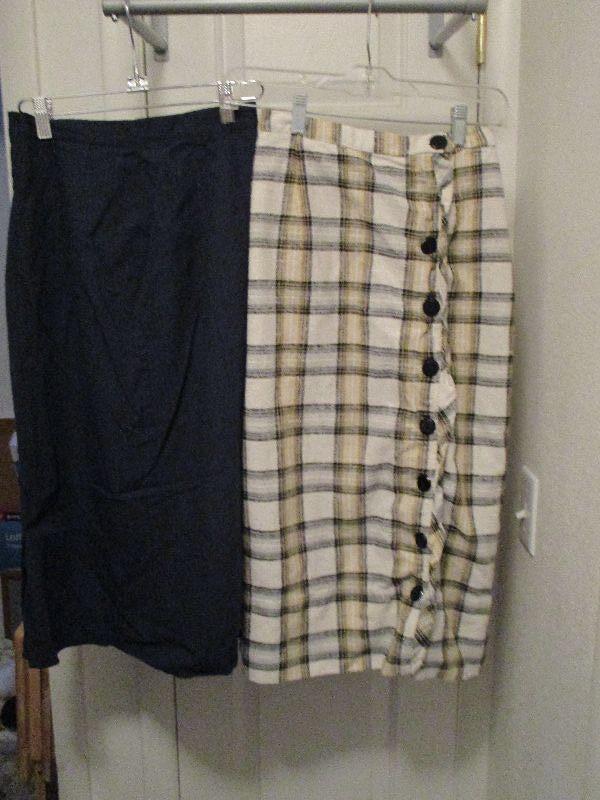 Martin Berens plaid skirt white, black, tan, 24" waist, 28.5 long; Navy skirt 26" waist, 28" long;