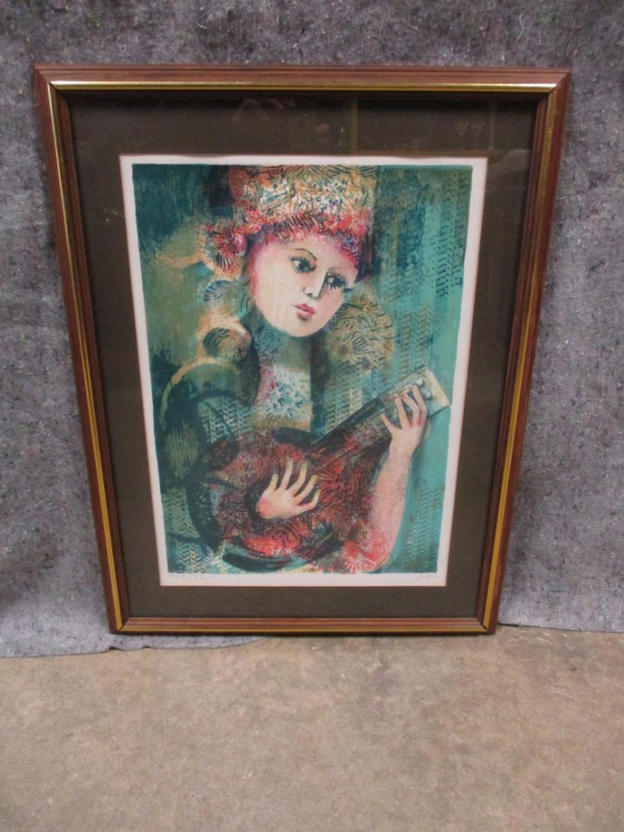 Framed Art by Jose Puig Marti Lithograph Numbered & Signed 19" x 25"