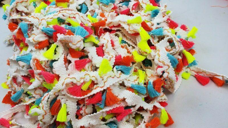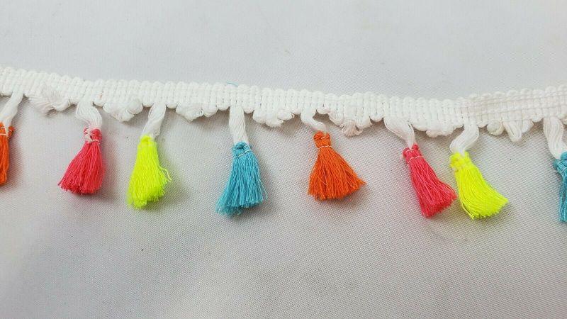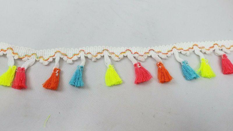 19 Yards-  Ivory, Neon Mix Multi Color Fringe Tassel, Garland Supply