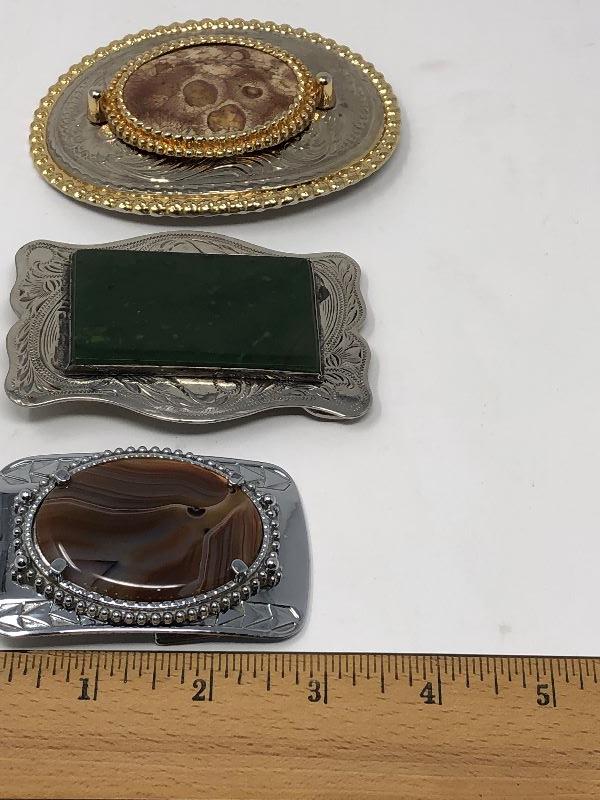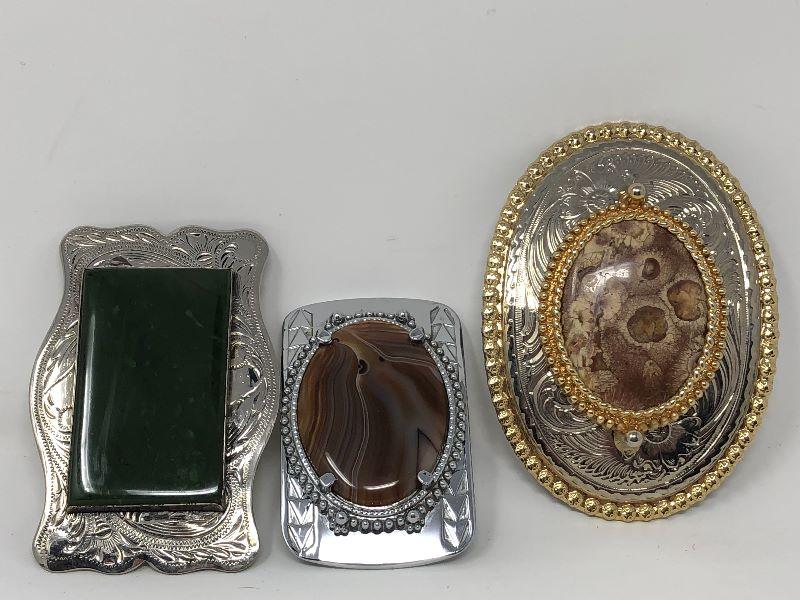 190: 3 Hand Crafted Polished Stone Belt Buckles
