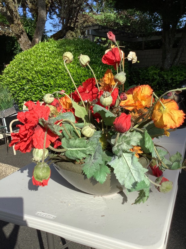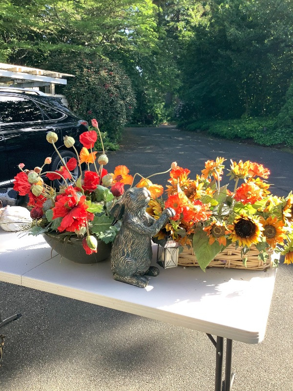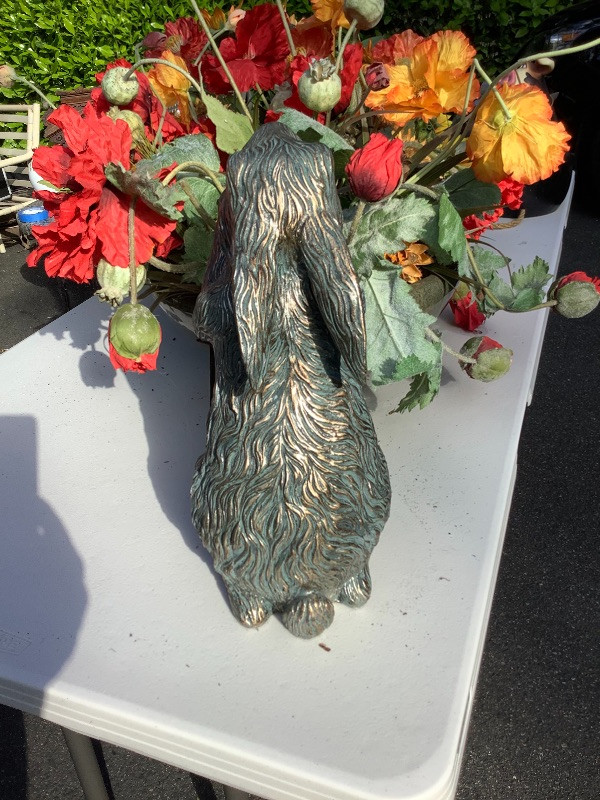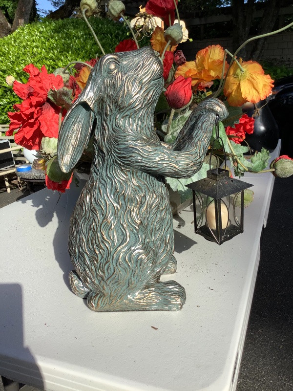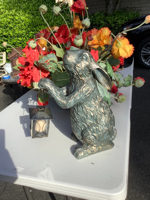 Artificial Flower Baskets with Bunny Statue measuring 15” tall