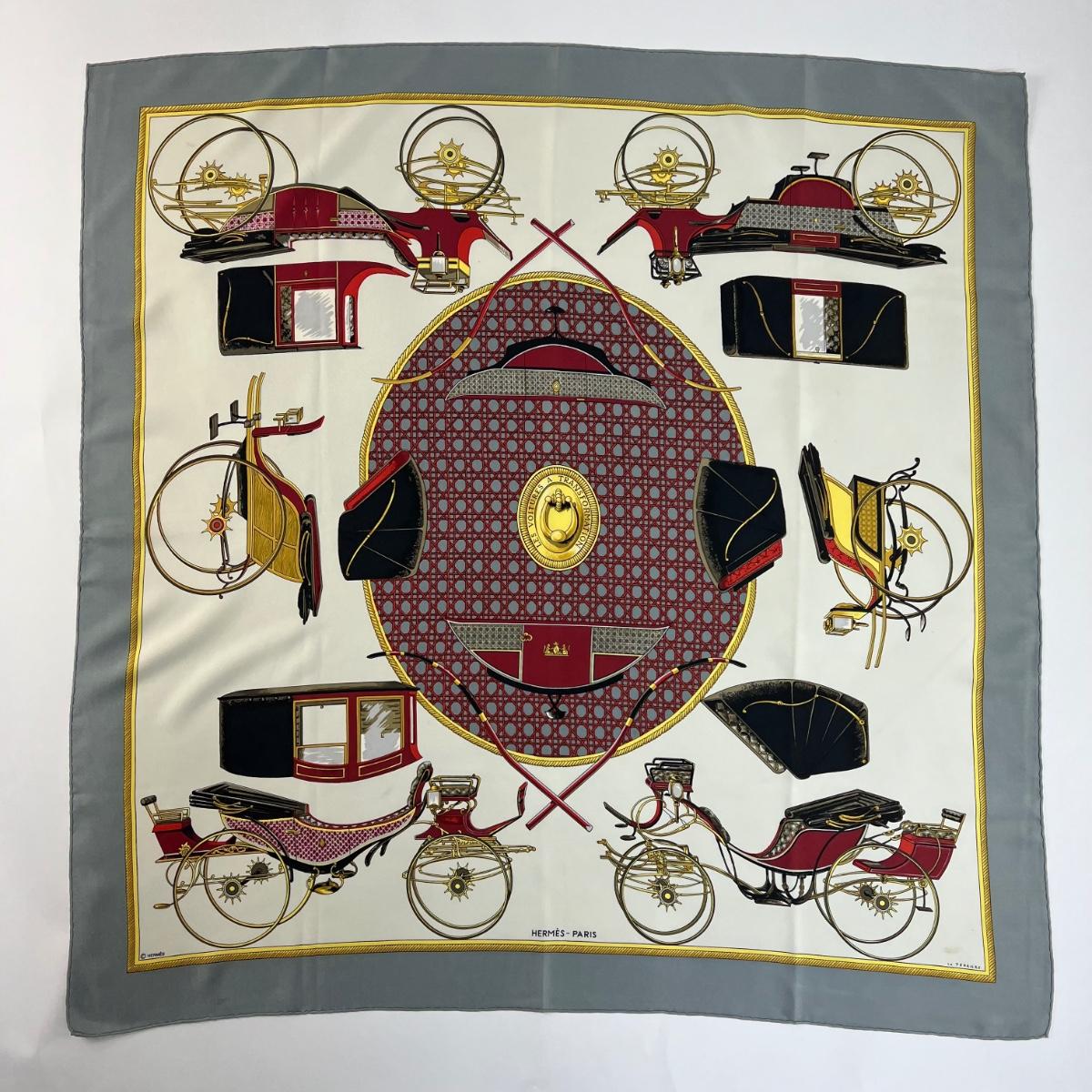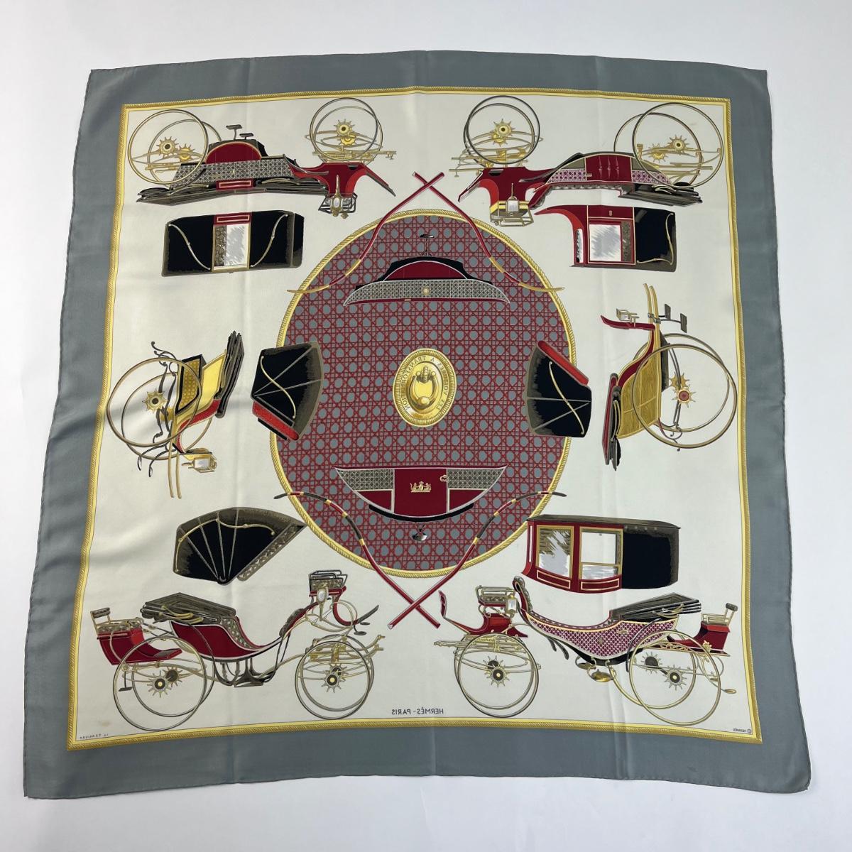 190 Authentic HERMÈS Carre 90 Silk Scarf Les Voitures a Transformation by Françoise De La Perriere 1965