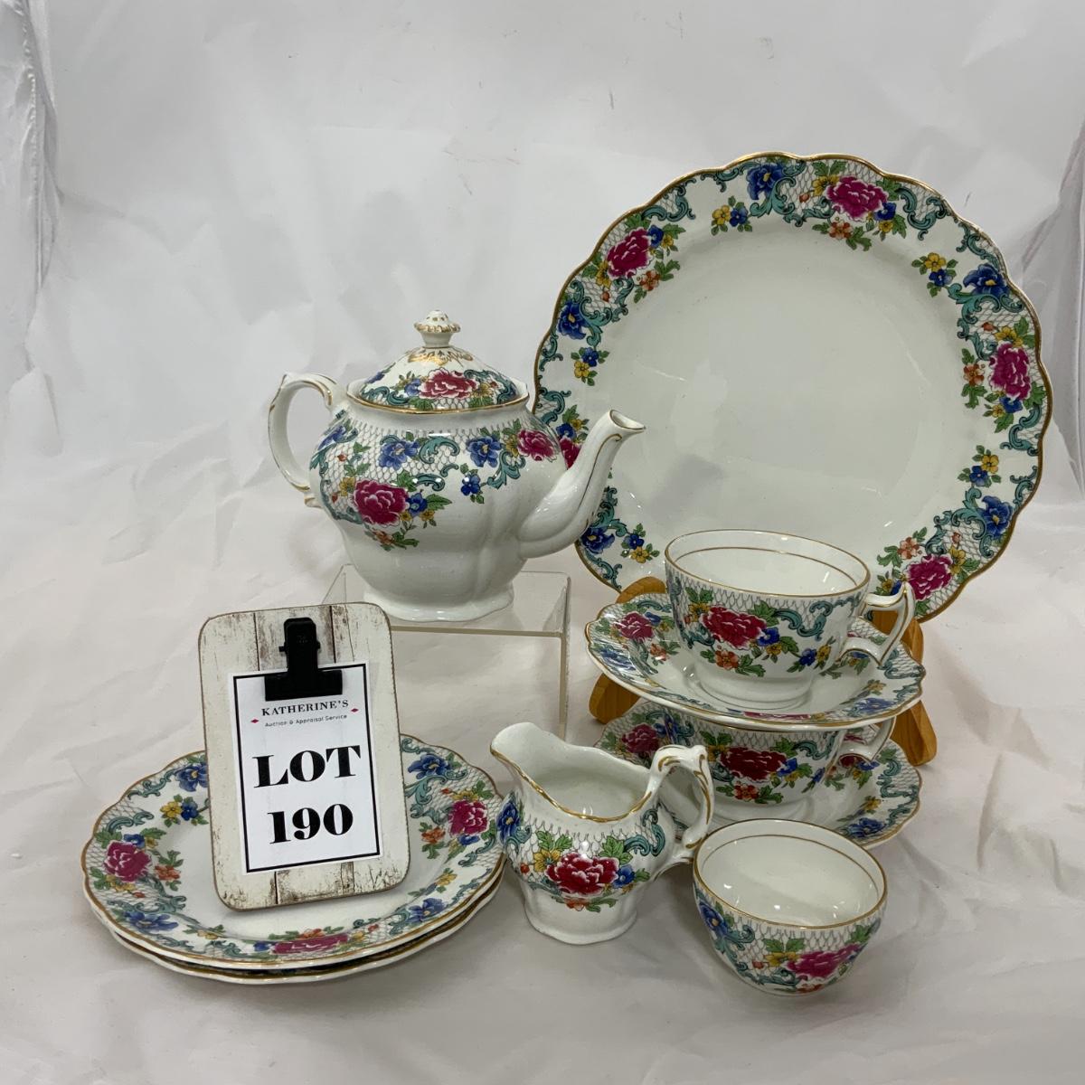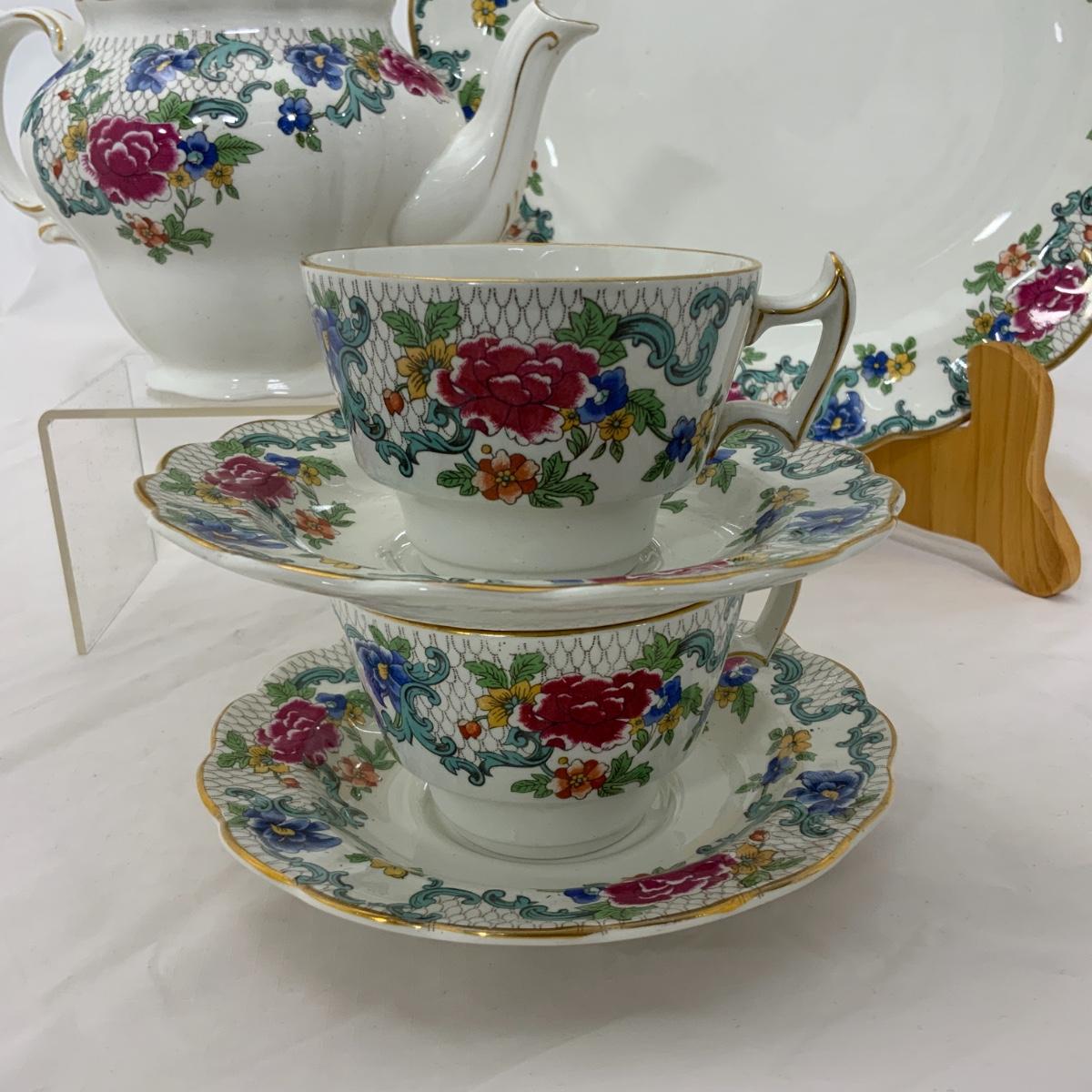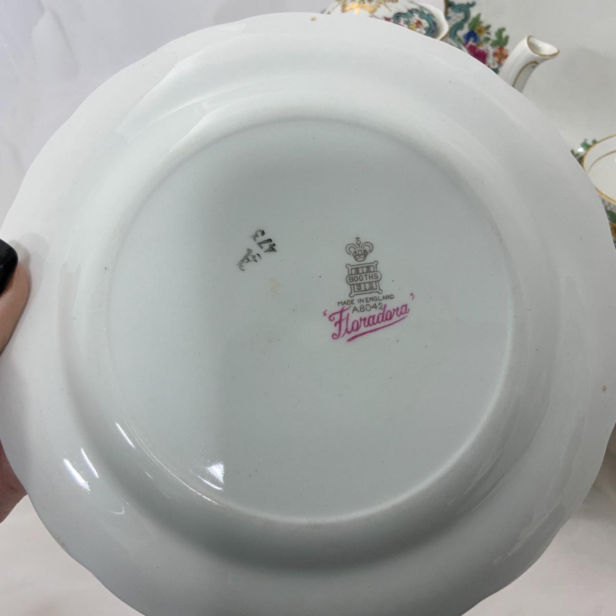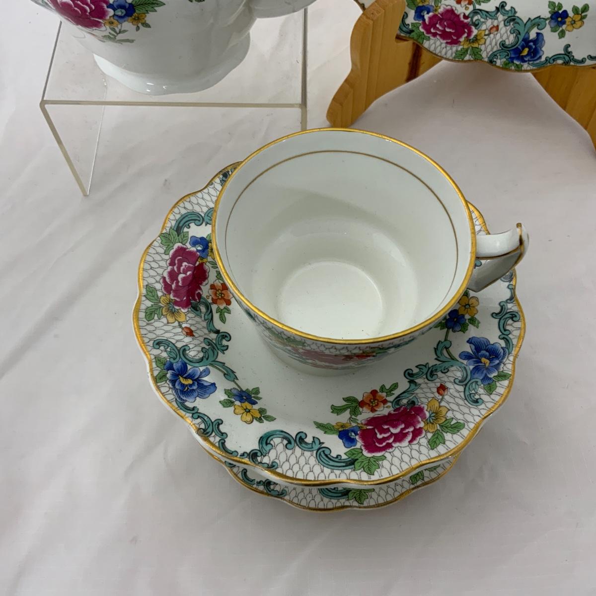 From the Estate of Peter and Alice Radovanovich: This set has the best name! Floradora! How creative! I love the vibrant colors of this set. You get two cups and saucers, a serving plate, two accessory plates, a tea pot, creamer and open sugar. What more could you need? Please see photos for details and condition. ::: Shipping is available on this lot. If you require shipping you must let us know at the close of the auction. We will coordinate with you after the item has been won. Shipping fees will include insurance up to or exceeding the value of all items being mailed. If you have any questions regarding this lot please contact the auctioneer either via this website, by direct email or by phone. PICK UP TIMES and other important information can be found in the TERMS and DESCRIPTION of the auction. Please take a look for pertinent information. Thanks!
