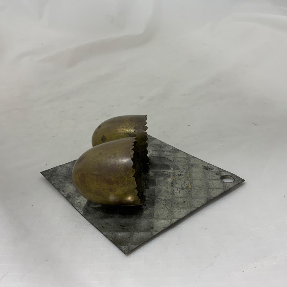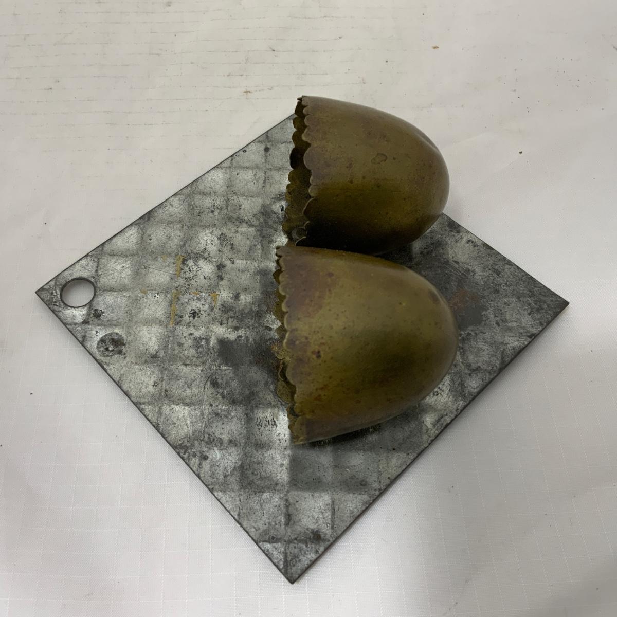 Attractive Brass Egg Match Safe set on a textured tin tile. Now that’s a tongue twister! Piece is in exceptional antique condition. Please see photos for details and condition. ::: Shipping is available on this lot. If you require shipping you must let us know at the close of the auction. We will coordinate with you after the item has been won. Shipping fees will include insurance up to or exceeding the value of all items being mailed. If you have any questions regarding this lot please contact the auctioneer either via this website, by direct email or by phone. PICK UP TIMES and other important information can be found in the TERMS and DESCRIPTION of the auction. Please take a look for pertinent information. Thanks!