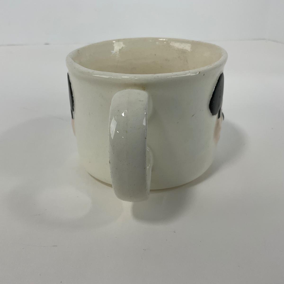 Two pieces including one vintage Mickey Mouse plastic bowl and one ceramic vintage Mickey Mouse mug. Both in well loved condition, and have some minor scuffs and marks but otherwise in good condition. Please see photos for details and condition. Any condition statement is given as a courtesy to a client, is an opinion, and should not be treated as a statement of fact. Reference to condition written, oral or within a condition report shall not be regarded as a full account of condition and may not include all defects, alterations, or restorations. Absence of a condition report does not imply a lot is flawless or lacking imperfections or damage. Katherine’s Auction & Appraisal Service shall have no responsibility for any error or omission. Returns shall not be accepted on the basis of condition. ::: Shipping is available on this lot. If you require shipping you must let us know at the close of the auction. We will coordinate with you after the item has been won. Shipping fees will include insurance up to or exceeding the value of all items being mailed. If you have any questions regarding this lot please contact the auctioneer either via this website, by direct email or by phone. PICK UP TIMES and other important information can be found in the TERMS and DESCRIPTION of the auction. Please take a look for pertinent information. Thanks!