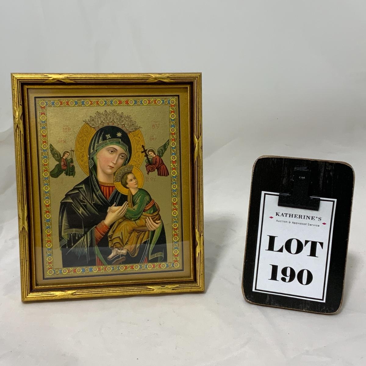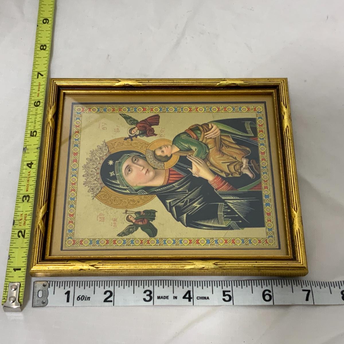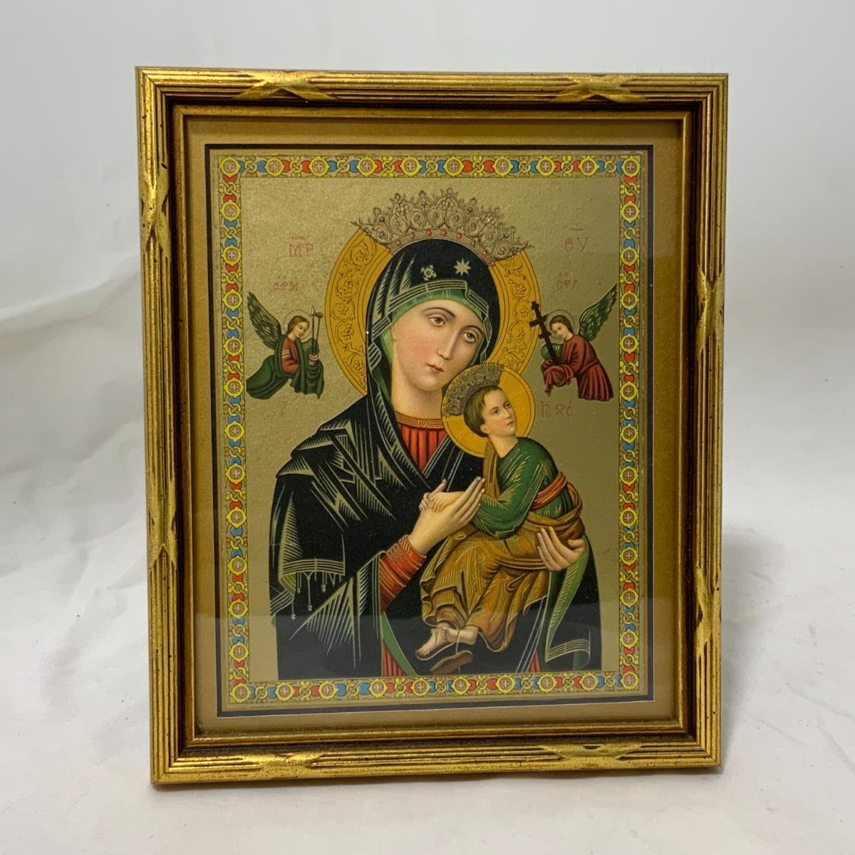 From the Estate of Peter Radovanovich: Beautiful Gold-Gilded and Framed Eastern Orthodox Style Idol of Mother Mary and Child. Please see photos for details and condition. ::: Shipping is available on this lot. If you require shipping you must let us know at the close of the auction. We will coordinate with you after the item has been won. Shipping fees will include insurance up to or exceeding the value of all items being mailed. If you have any questions regarding this lot please contact the auctioneer either via this website, by direct email or by phone. PICK UP TIMES and other important information can be found in the TERMS and DESCRIPTION of the auction. Please take a look for pertinent information. Thanks!