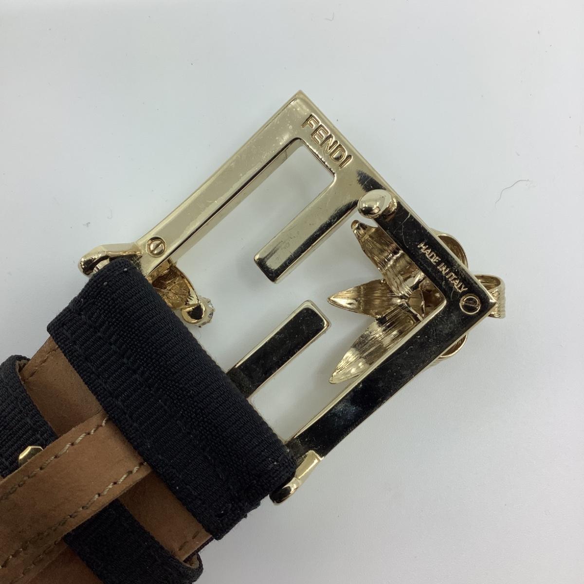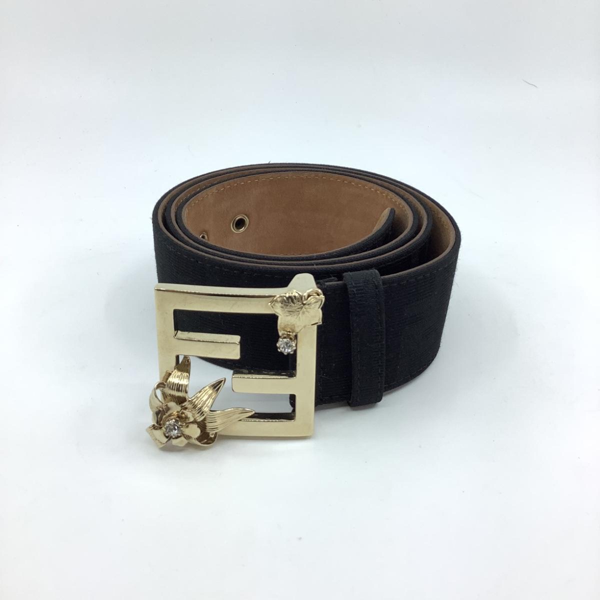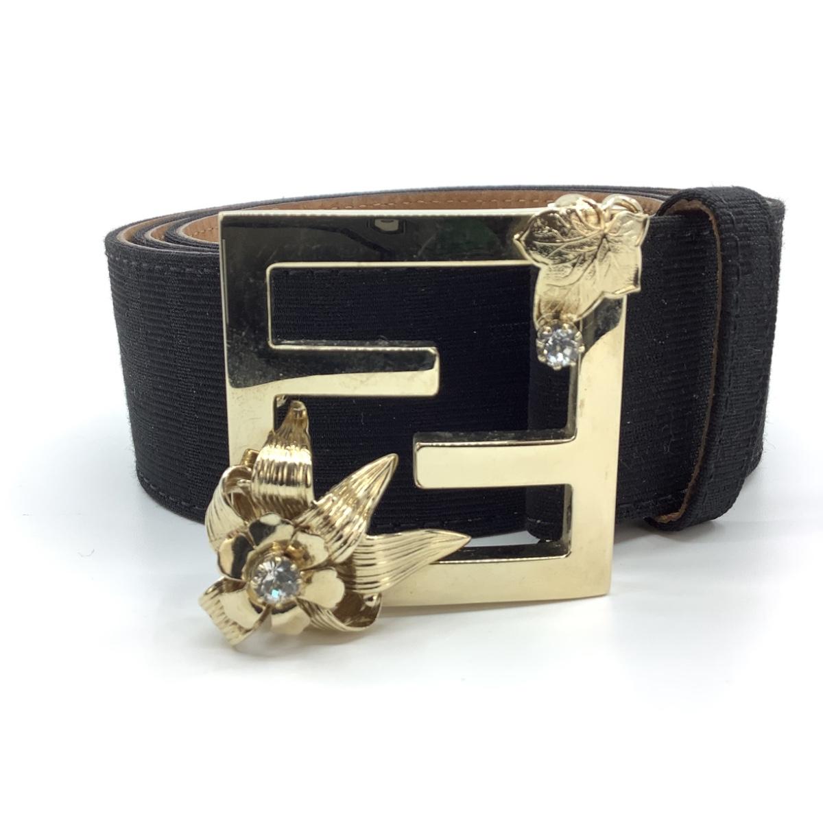 190 FENDI Leather Belt Gold Floral Buckle Size 95/38