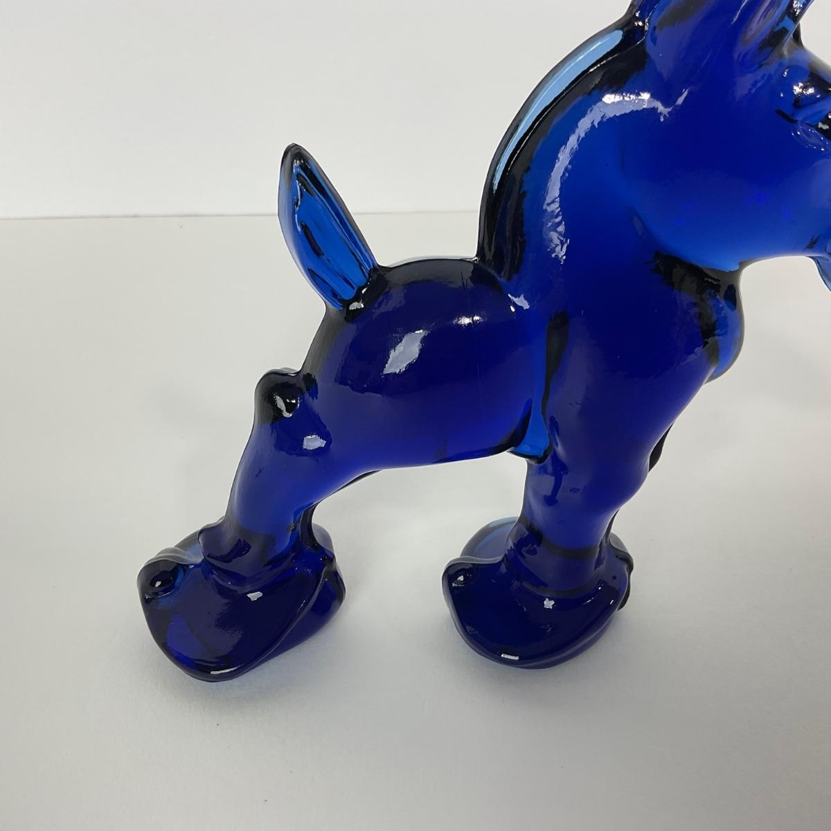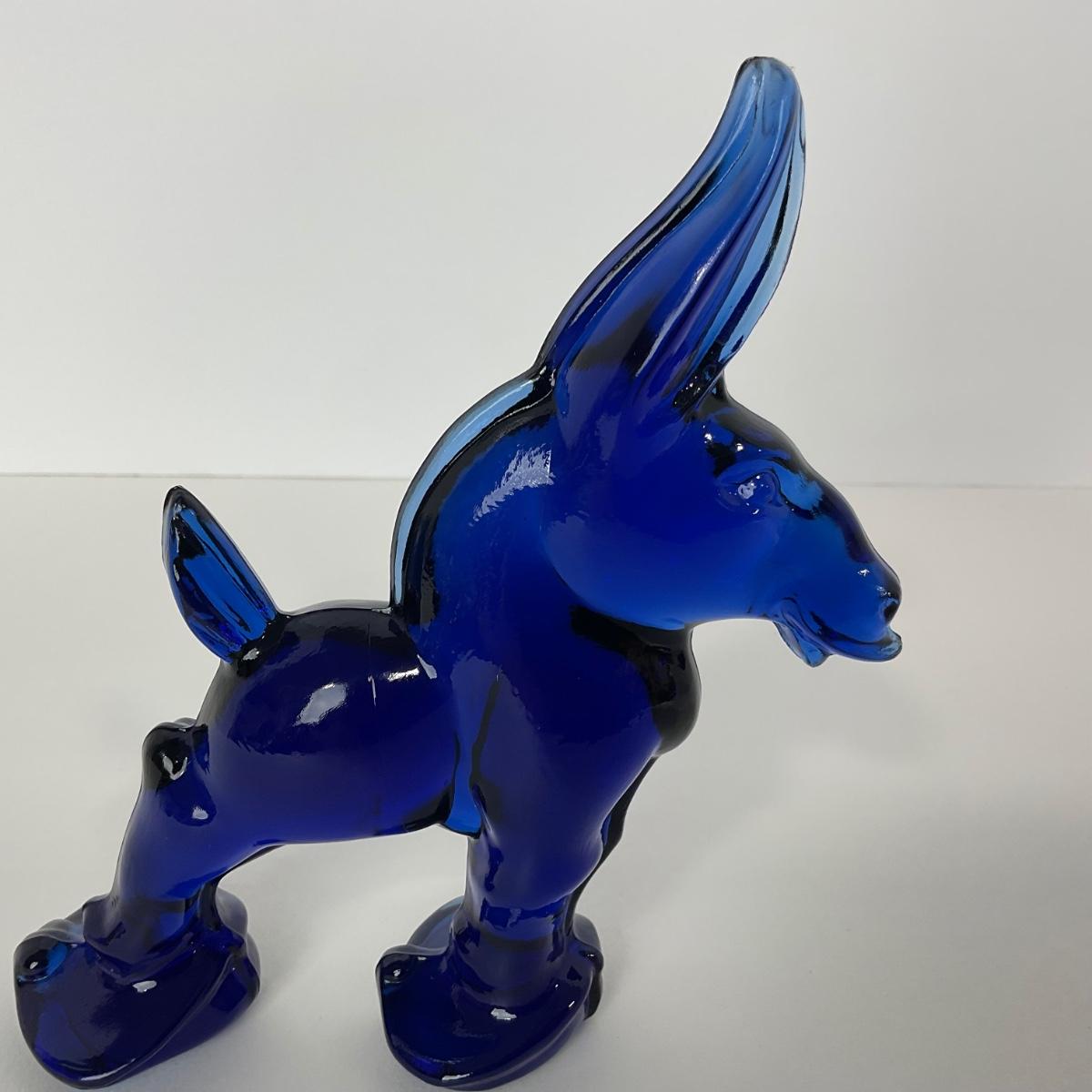 One Heisey by Imperial marked long ear blue donkey figure 6 1/2 inches wide by 6 1/2 inches tall. This piece has no damage, and appears to be in great shape with no visable chips, cracks, or broken pieces. Please see photos for details and condition. Any condition statement is given as a courtesy to a client, is an opinion, and should not be treated as a statement of fact. Reference to condition written, oral or within a condition report shall not be regarded as a full account of condition and may not include all defects, alterations, or restorations. Absence of a condition report does not imply a lot is flawless or lacking imperfections or damage. Katherine’s Auction & Appraisal Service shall have no responsibility for any error or omission. Returns shall not be accepted on the basis of condition. ::: Shipping is available on this lot. If you require shipping you must let us know at the close of the auction. We will coordinate with you after the item has been won. Shipping fees will include insurance up to or exceeding the value of all items being mailed. If you have any questions regarding this lot please contact the auctioneer either via this website, by direct email or by phone. PICK UP TIMES and other important information can be found in the TERMS and DESCRIPTION of the auction. Please take a look for pertinent information. Thanks!