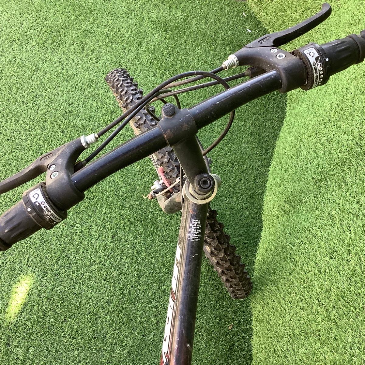 Size 25, burgundy bike. Needs TLC. Flat tires.