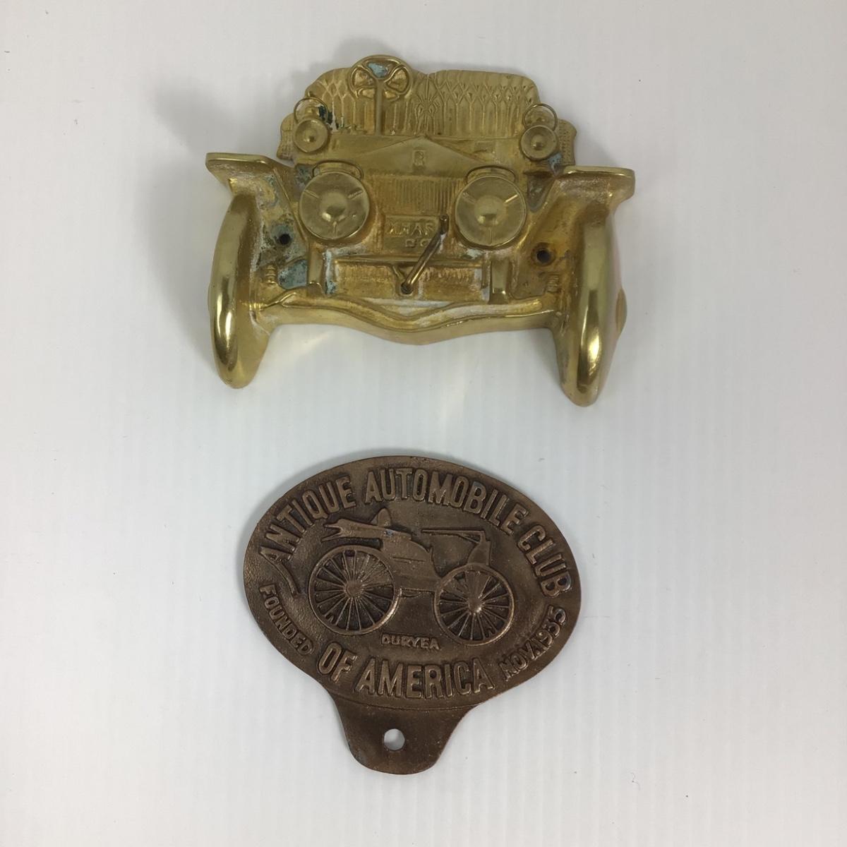 The brass ford model plate is signed by the maker (FRYE original) and measures 5” x 4”, the Antique Automobile of America Badge.