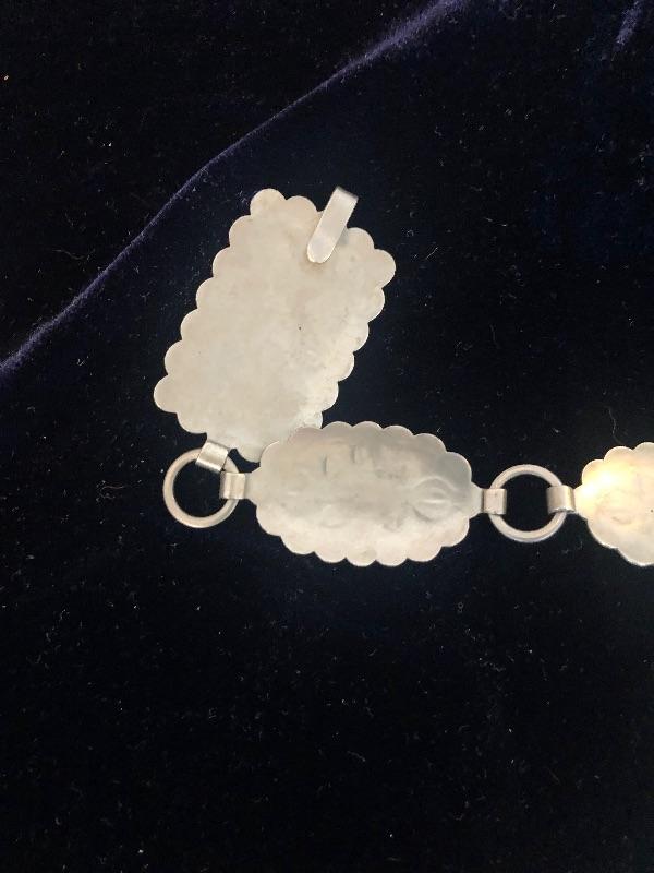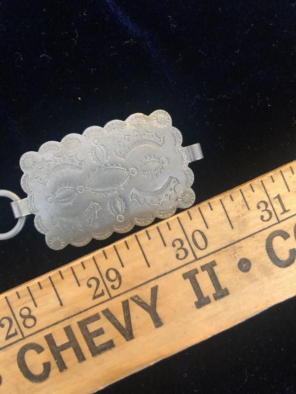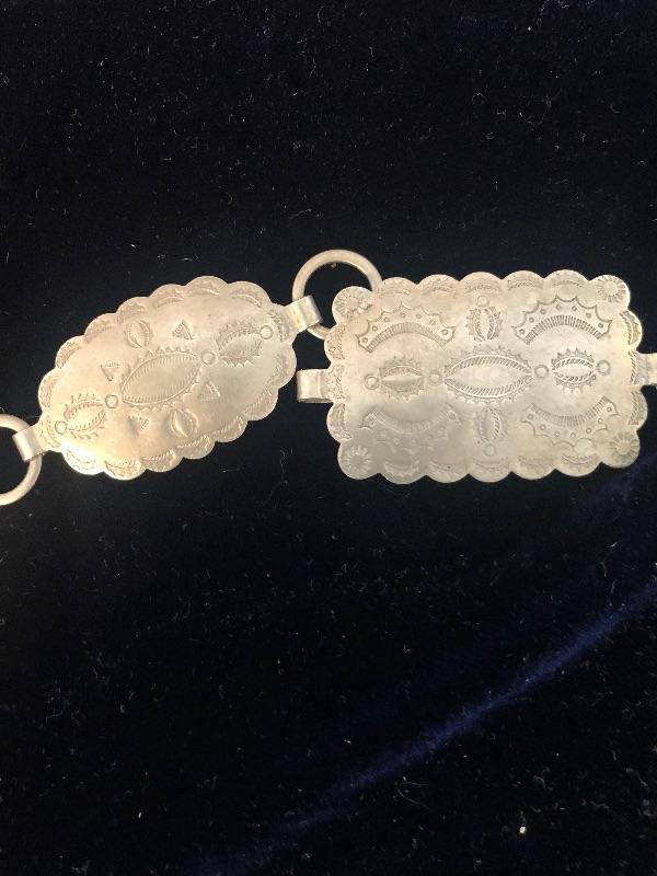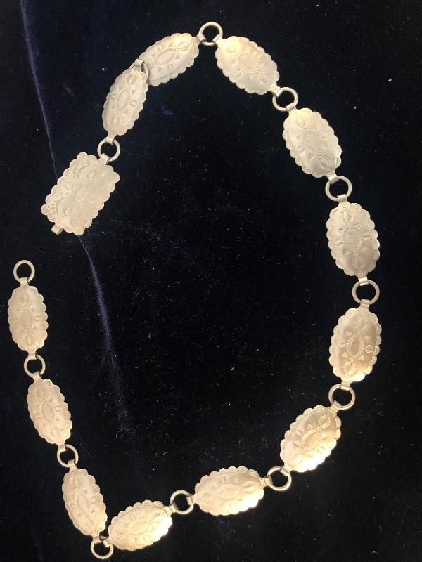 Possibly Mexican silver belt. No markings. This is an ONSITE Auction all items will need to be picked up on location. Please see auction description for pick up procedures. Shipping is available on smaller items.