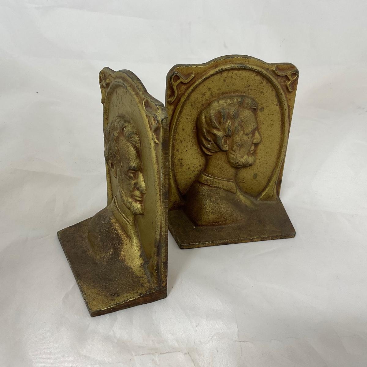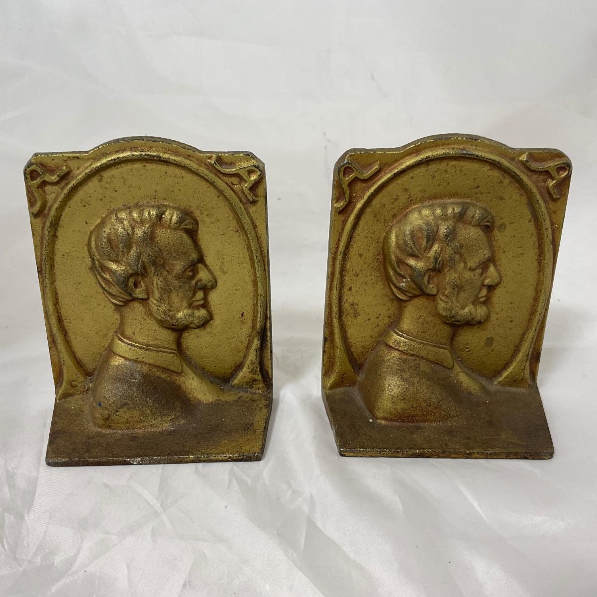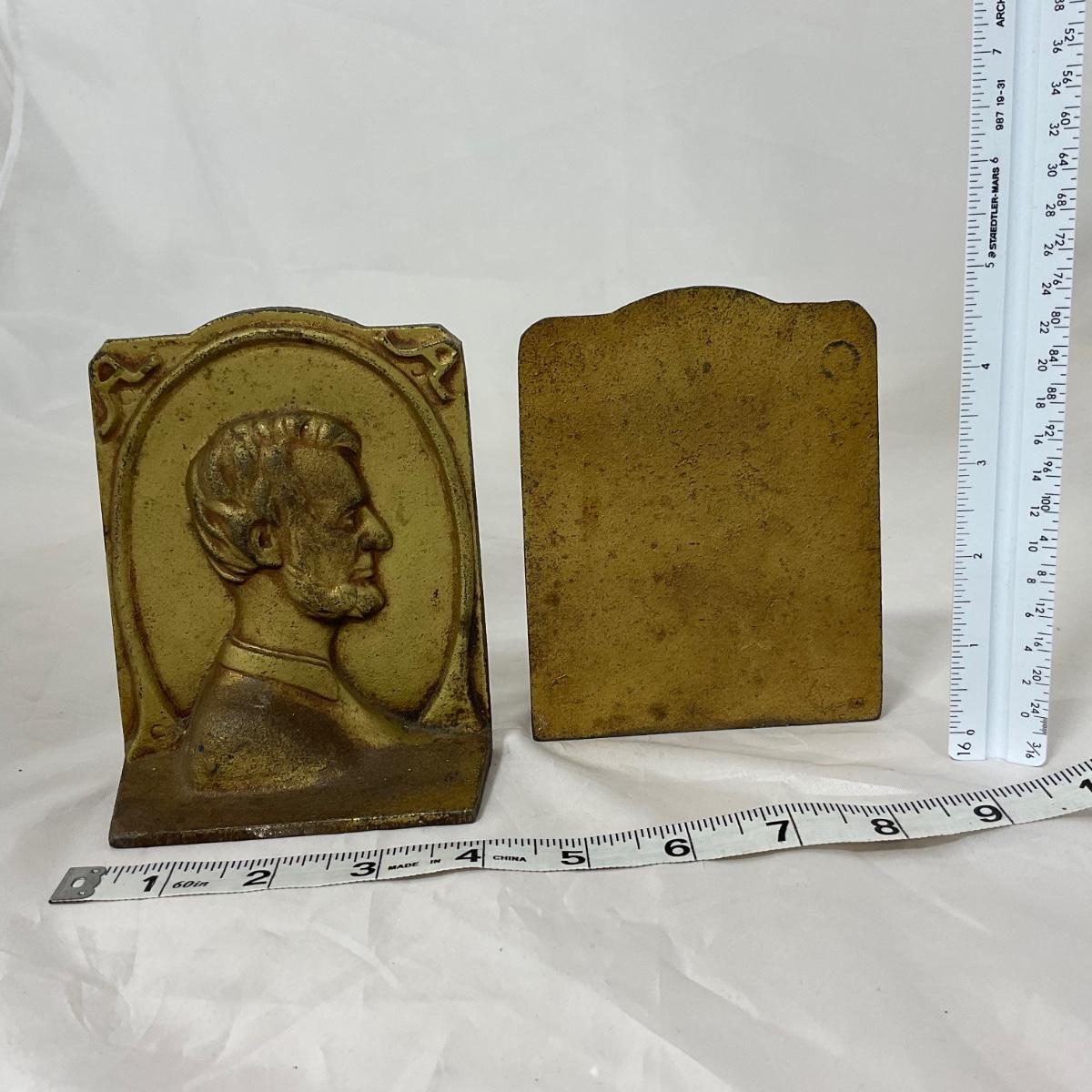 One set of vintage Abe Lincoln book ends. This set is very heavy. Please see photos for details and condition. ::: Shipping is available on this lot. If you require shipping you must let us know at the close of the auction. We will coordinate with you after the item has been won. Shipping fees will include insurance up to or exceeding the value of all items being mailed. If you have any questions regarding this lot please contact the auctioneer either via this website, by direct email or by phone. PICK UP TIMES and other important information can be found in the TERMS and DESCRIPTION of the auction. Please take a look for pertinent information. Thanks!