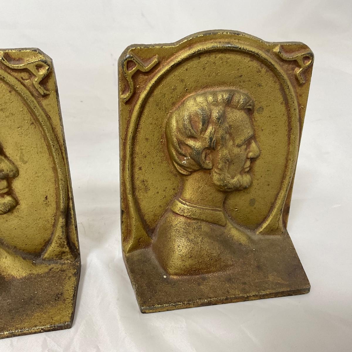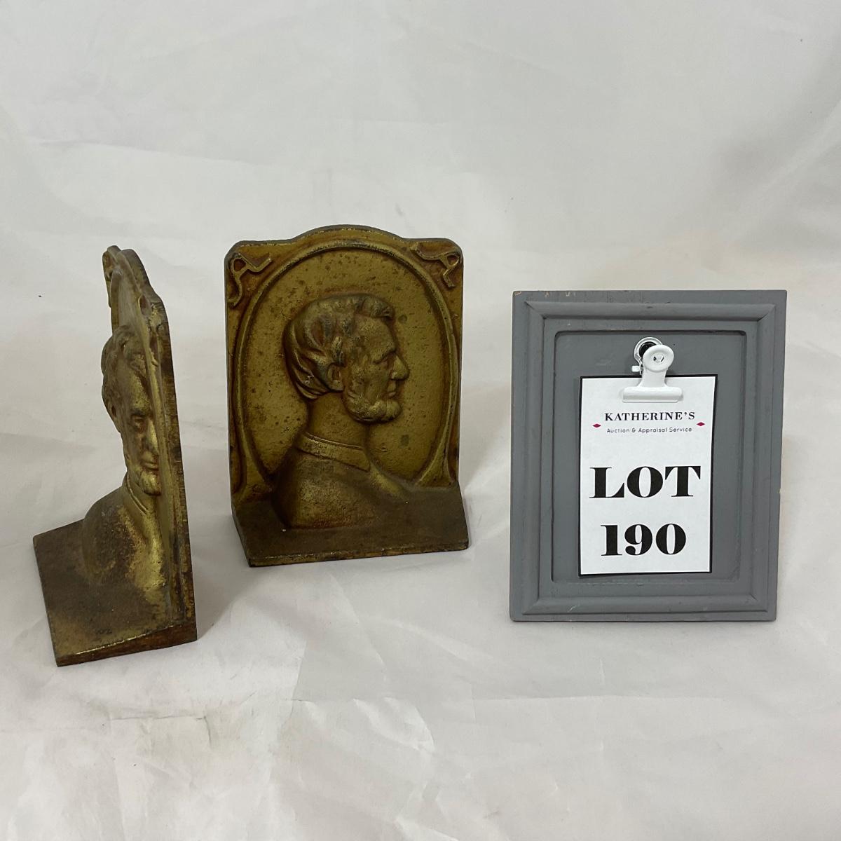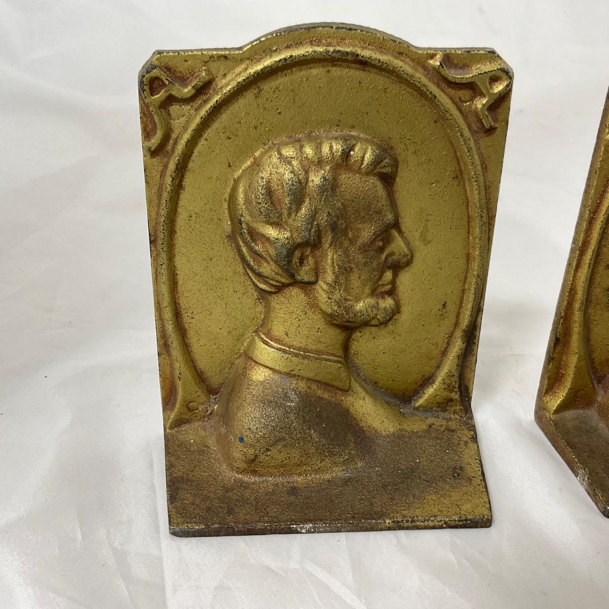 One set of vintage Abe Lincoln book ends. This set is very heavy. Please see photos for details and condition. ::: Shipping is available on this lot. If you require shipping you must let us know at the close of the auction. We will coordinate with you after the item has been won. Shipping fees will include insurance up to or exceeding the value of all items being mailed. If you have any questions regarding this lot please contact the auctioneer either via this website, by direct email or by phone. PICK UP TIMES and other important information can be found in the TERMS and DESCRIPTION of the auction. Please take a look for pertinent information. Thanks!
