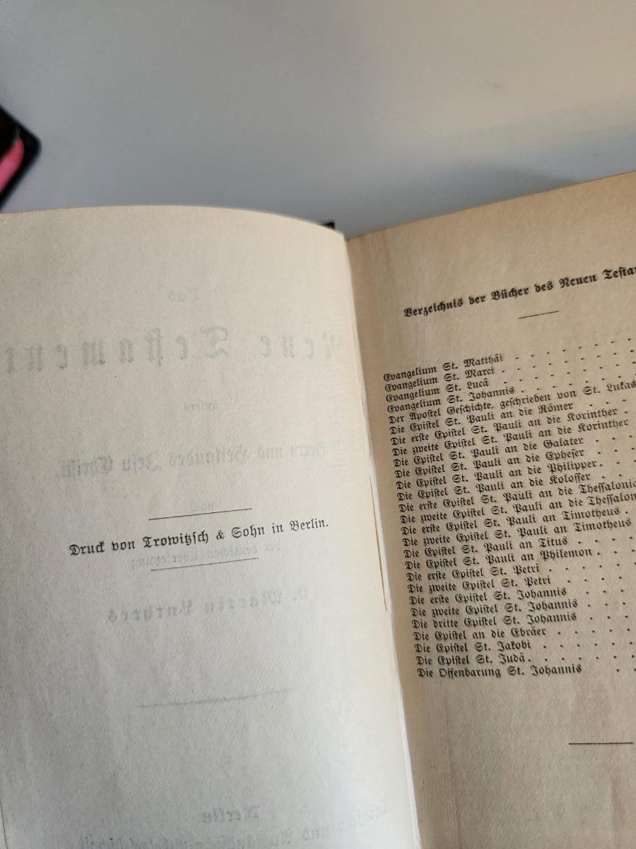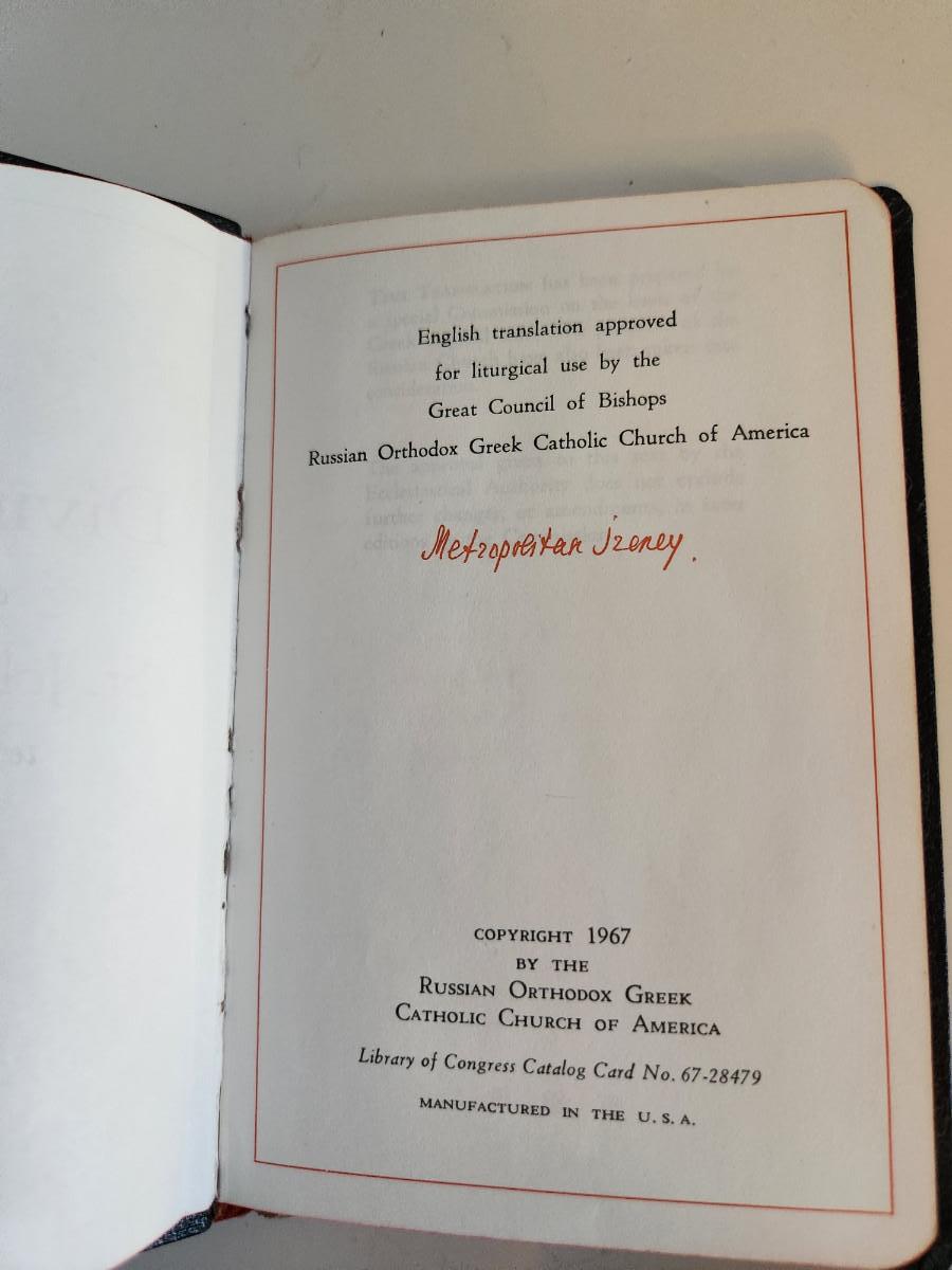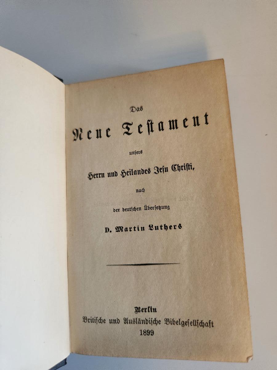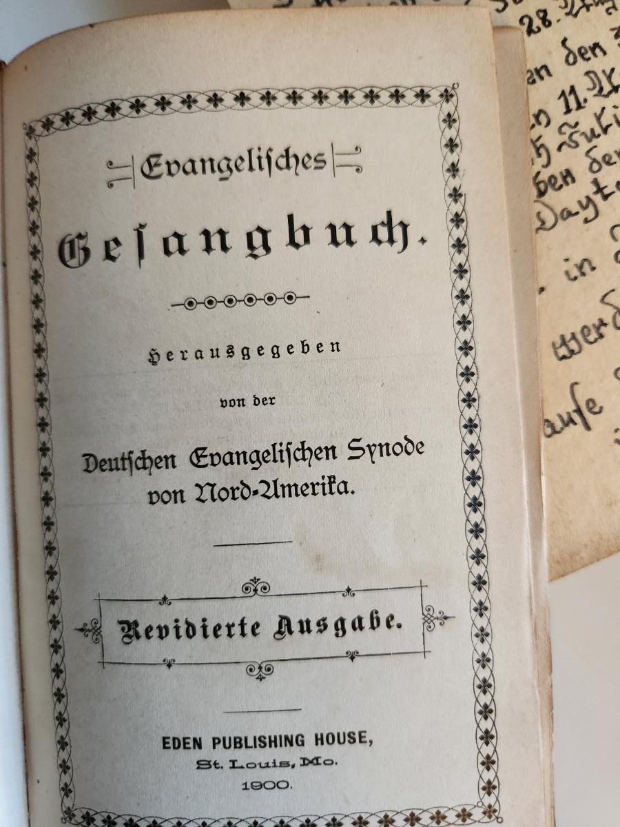 This auction lot is for a 1900 German Evangelical Missal with the name Alma Bandle inscribed on the cover. This beautiful book is a treasure with an included written note in nice script telling of her birth in 1887 in Newport, KY and a listing of her various relatives. There is a nameplate of her great grandson on the flyleaf. This offering also includes a copy of Divine Liturgy 1967 and another wonderful small Testament dated 1899 printed in German.