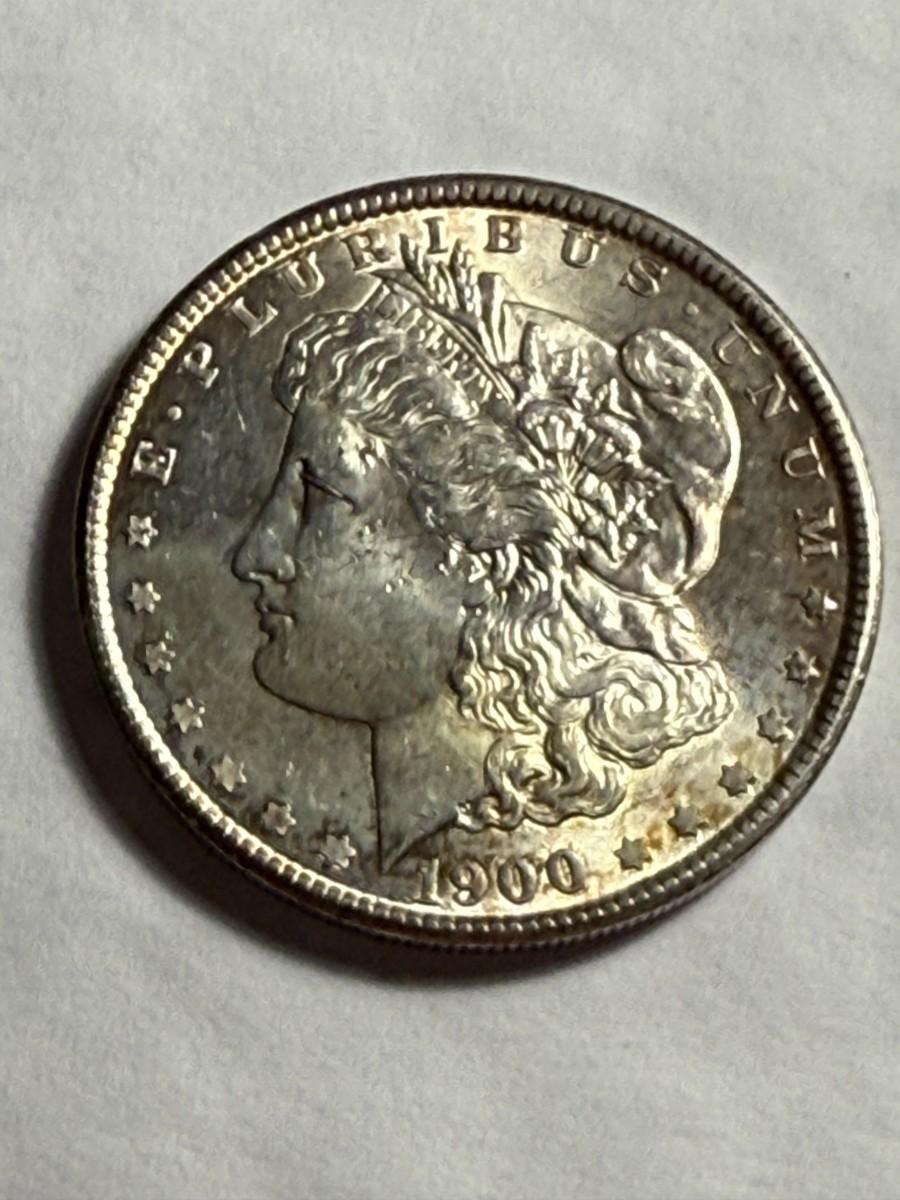 1900-P UNCIRCULATED CONDITION LIGHTLY TONED MORGAN SILVER DOLLAR. $5 DOMESTIC SHIPPING.