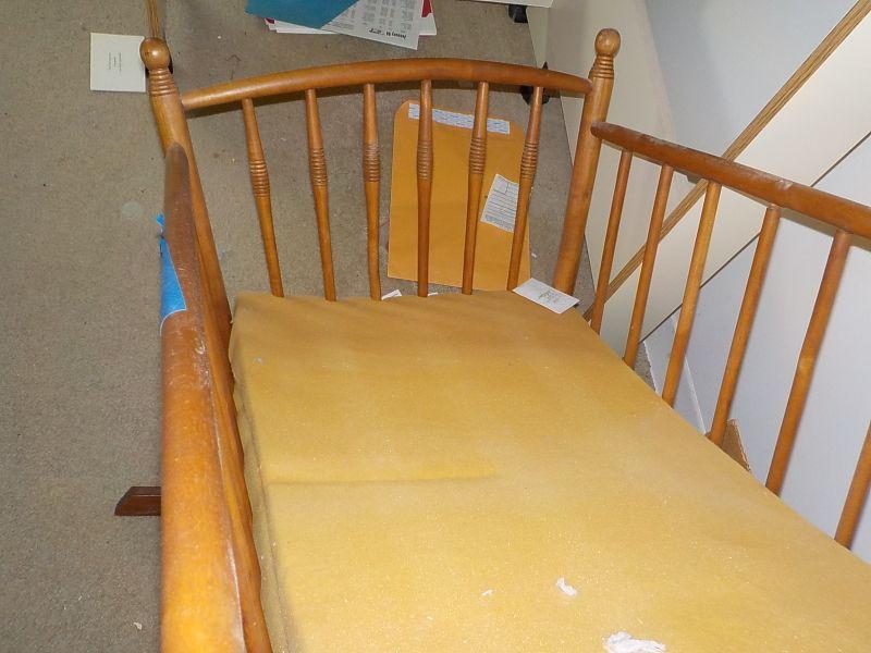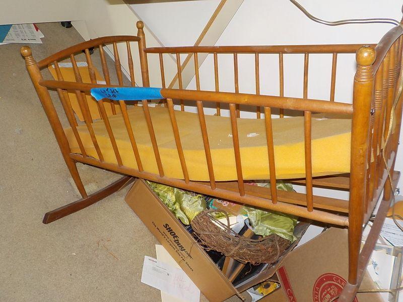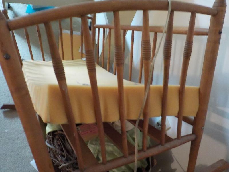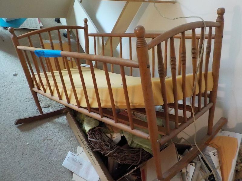 Hand made wood 1900's or earlier baby crib. Sz. 18 in. x 32in. x 16 in high. crib.