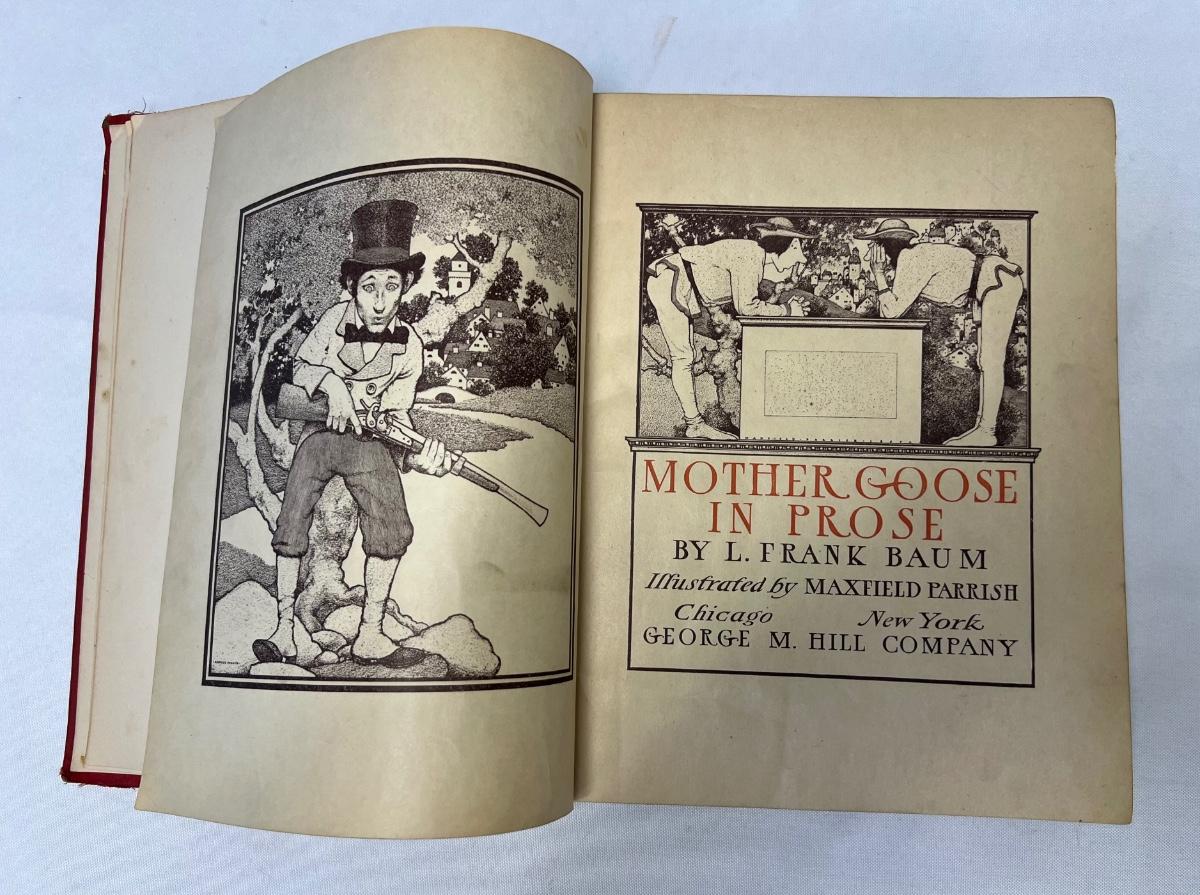 Pre-auction estimate: $300-400. Written by Frank Baum and illustrated by Maxfield Parrish. The spine is coming away from the binding. There is wear to the cover in spots. There are no missing pages. Measurement: 10" x 8". [BS]