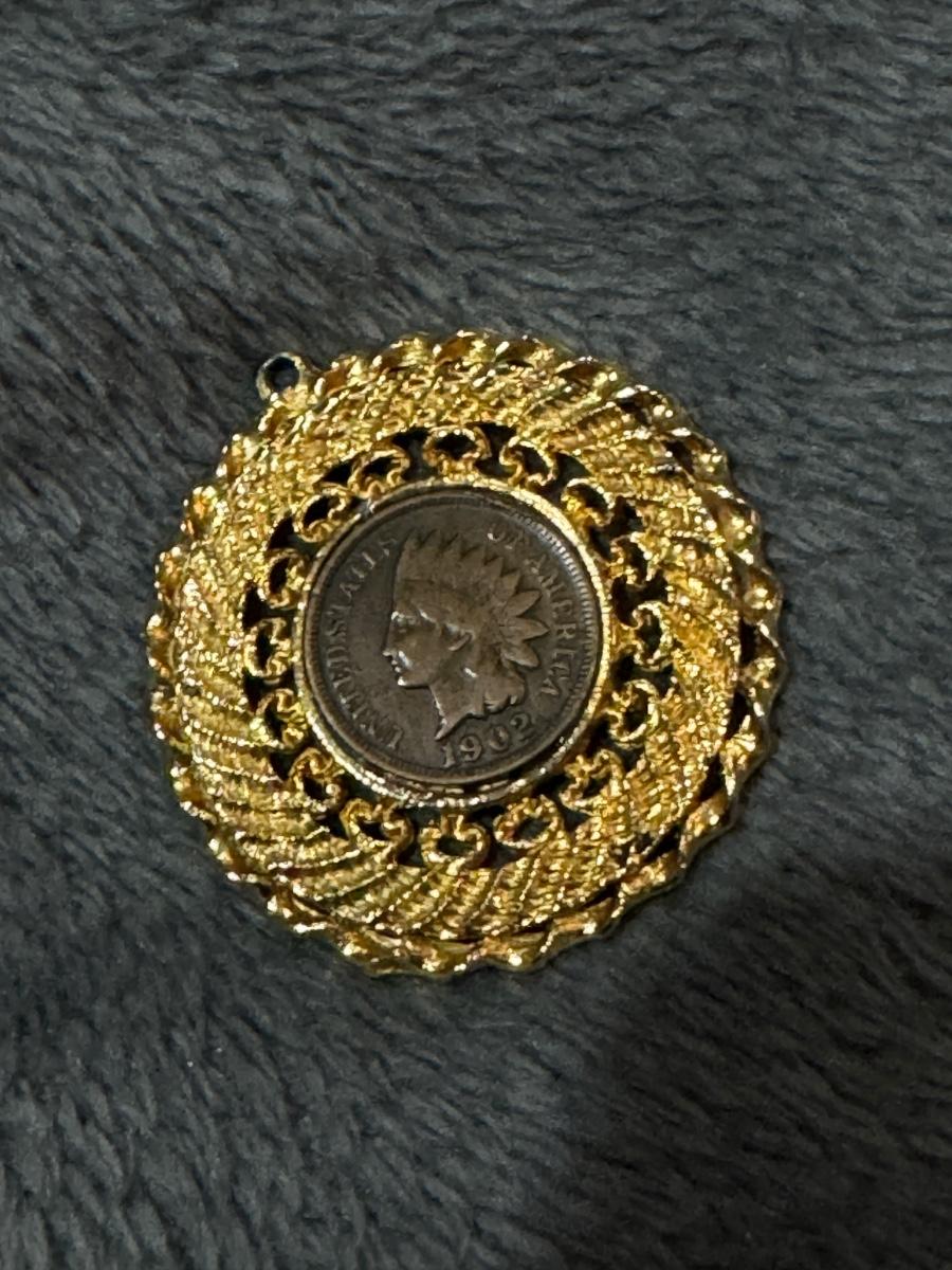 1902 INDIAN HEAD PENNY 24kt pennant Beautiful