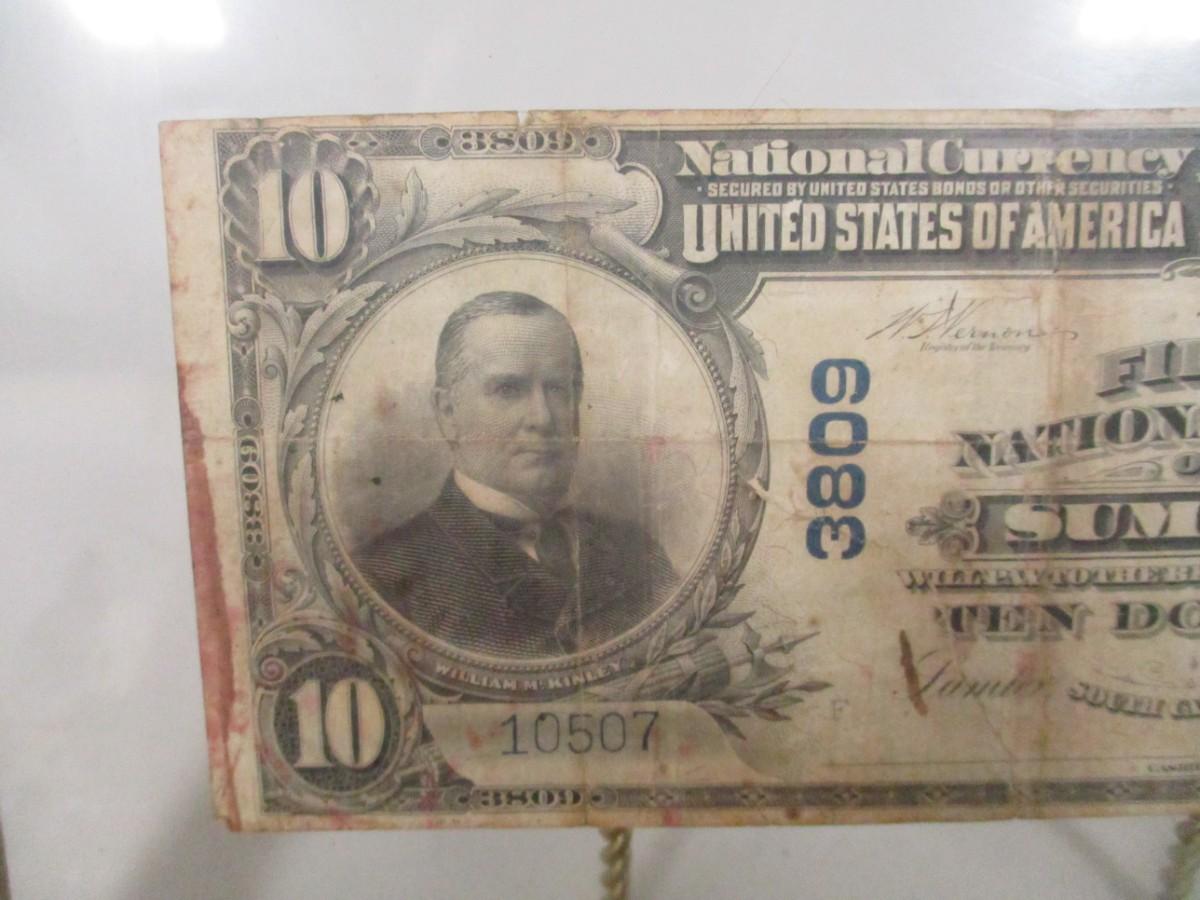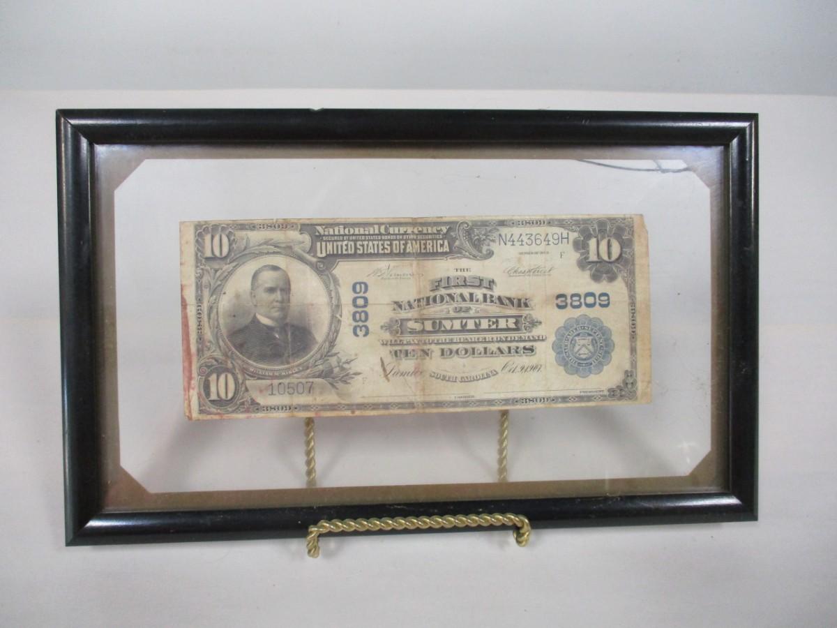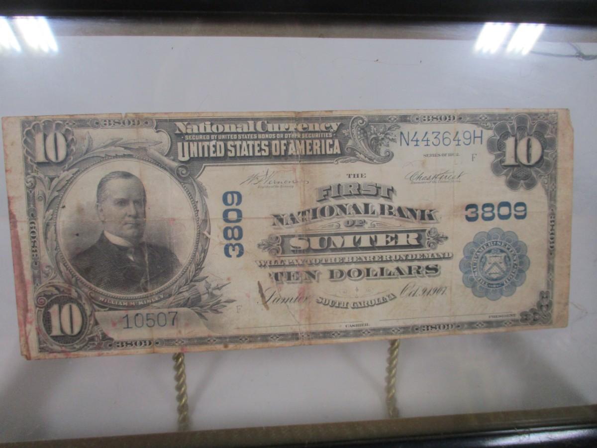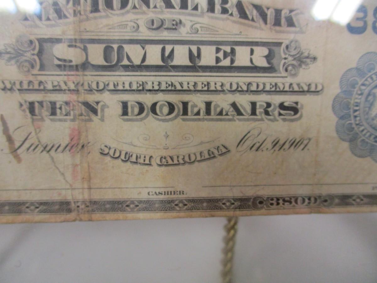 1902 National Bank of Sumter $10 Dollar Bill Blue Seal Paper Currency