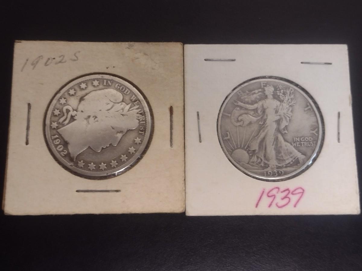1902-S and 1939 Silver Half Dollars Circulated (14)