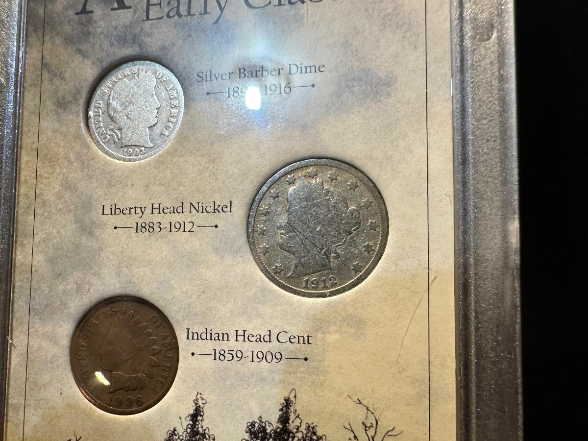 1903 SILVER BARBER DIME, 1912 LIBERTY HEAD NICKEL AND 1906 INDIAN HEAD PENNY