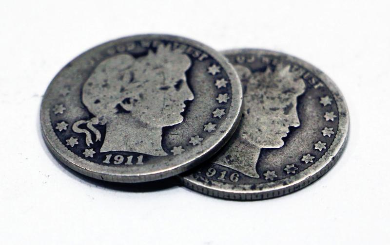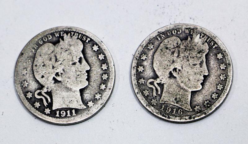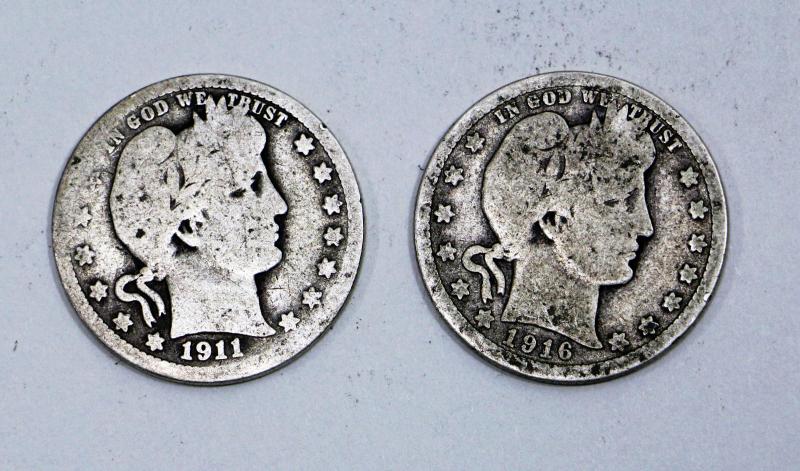 1904 & 1907 Silver Barber Quarter Doallars Set - 2 Rare American Coins #501-06